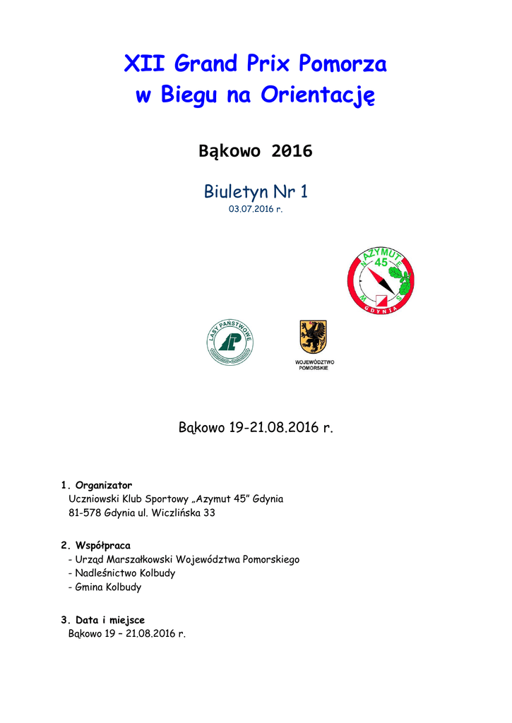 biuletyn nr. 1 - Azymut 45 Gdynia