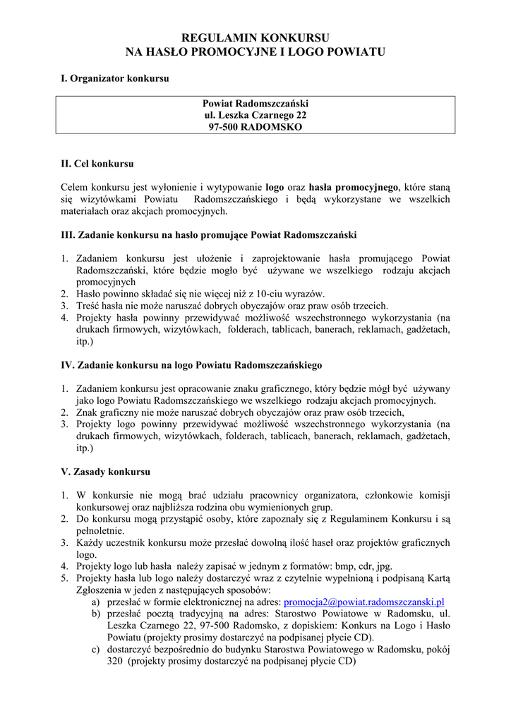 regulamin konkursu na hasło promocyjne i logo powiatu