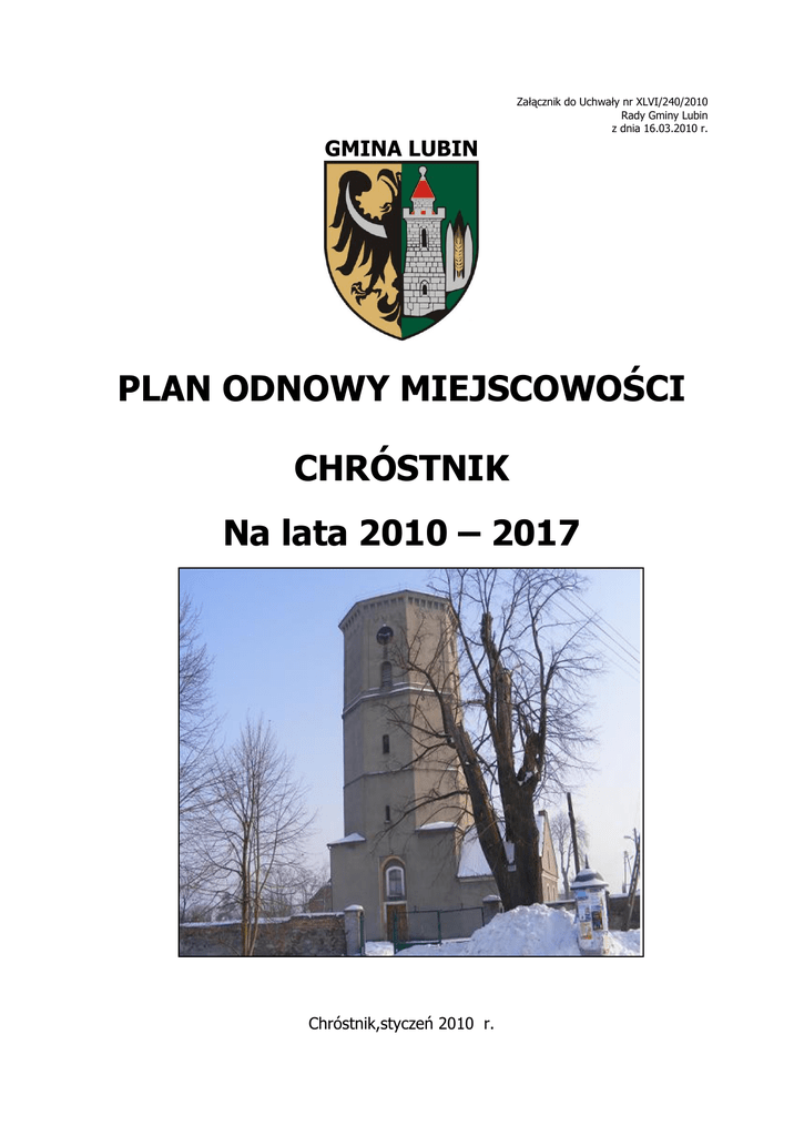 PLAN ODNOWY MIEJSCOWOŚCI CHRÓSTNIK Na lata 2010 – 2017