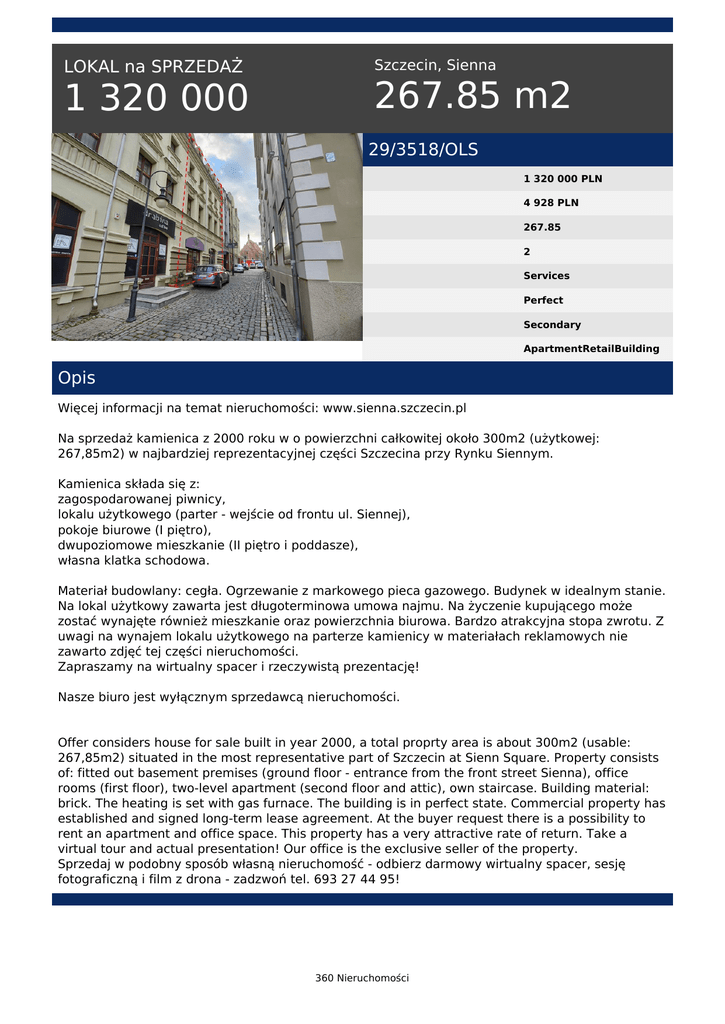 1 320 000 267.85 m2 - 360 Nieruchomości Szczecin