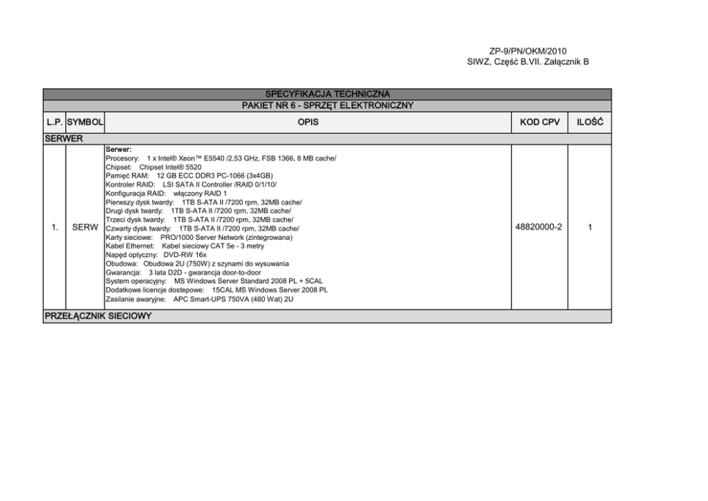 1. SERW 1 PRZEŁĄCZNIK SIECIOWY PAKIET NR 6