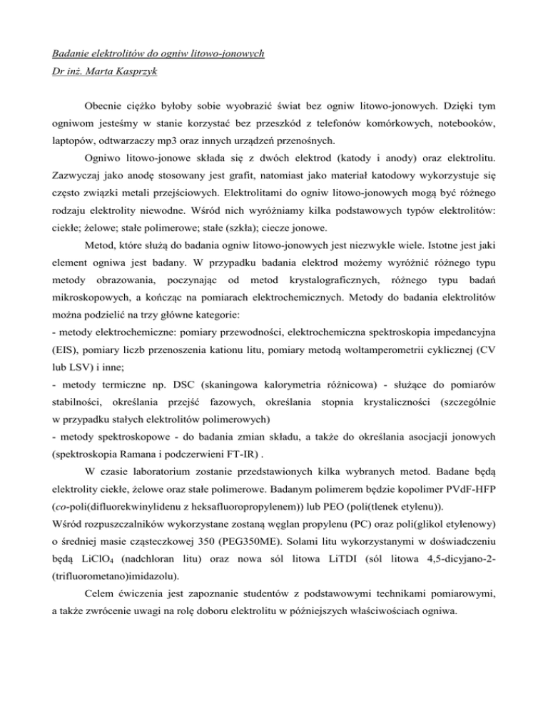 badanie elektrolitow do ogniw litowo-jonowych mgr