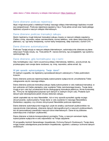 Jakie dane o Tobie zbieramy w sklepie internetowym https://paisley.pl/