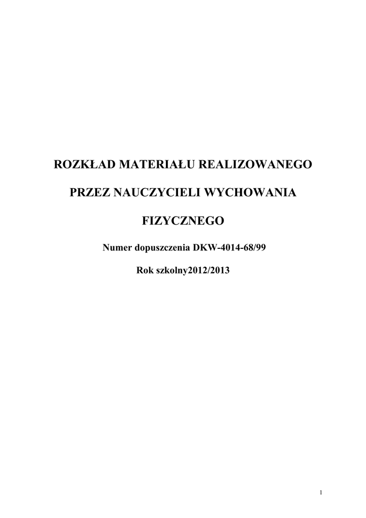 rozkład materiału realizowanego przez nauczycieli wychowania