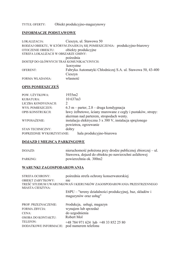 ! "#!$%! $ & ' () * +, -#!% ." '/ 0 1 #2!%- %3 *"4 5 1" *#$# 2"! $# 2" ." * ! ! "#!$%" / .*#! # 61"2 7 - * 45 - 6 0/2 $8 !* 1 2" !$ %2 $8 & ! 2 $ & : & 1! / !-!2"! $9: ' A)F E '7 & ( / 5 *!> 2" +,' ;< ;,, 7= ?@<+ A ?, B<C < A B)< E : G ( 5 /) > /! .! ! "$#.! 2- 62!$%" / *) 5 1" *#$# D 5"* 2* $%" *)!) () * ( : & H '& '& 9 ) < I <F, J' & ( & KG ' * !2 $82"$#2 5 5 # -2" / 9 ( # * !2" 9 - %!#- * 5! "26 ! $8 2 ." #!. / MN * -" 1 /! 1"!* ! $" *# 2! 7= ' 9 7 * 2 & /!D " " : G 5) 5 # #2!$# 2" 1! #. $"! $ 2! * .! 2 ! 2 - -! / "2 1!$% 5 ' ( E () &L ( ) <,, A L 9 & & 2 0/ #!6 *5 -! /!2"! 5 # * : ( 7 &: O ' B5 E O H 5 ( 9 &: & ' G Robert & Mol LP, <<Q F+? F< lub +48 33 852 25 80 +48 784 971BC624 ( L # 22 6 '& : H