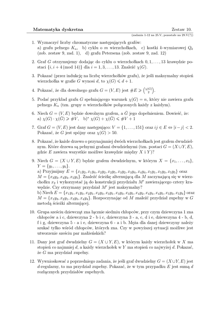 12. Wywnioskować z poprzedniego zadania, że jeśli graf dwudzielny G = (X ∪Y, E) jest