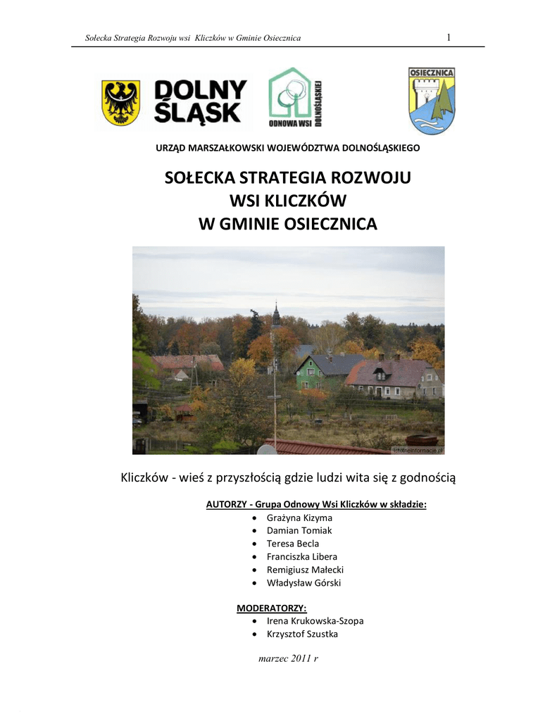 sołecka strategia rozwoju wsi kliczków w gminie osiecznica