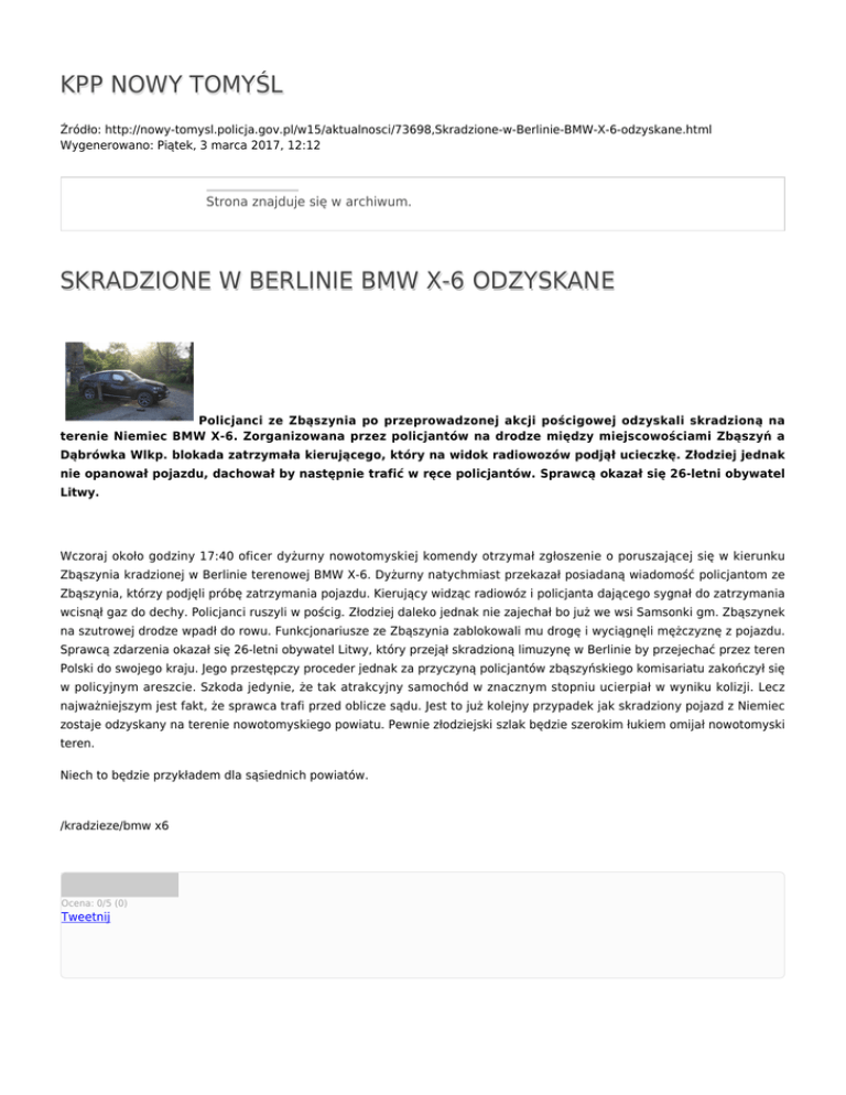 KPP NOWY TOMYŚL SKRADZIONE W BERLINIE BMW X