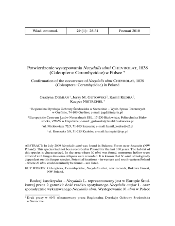 Potwierdzenie występowania Necydalis ulmi CHEVROLAT, 1838