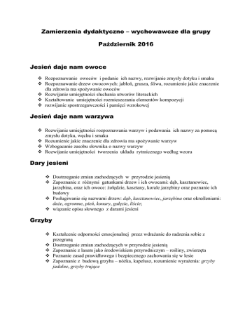 wychowawcze dla grupy Październik 2016 Jesień daje nam owoce