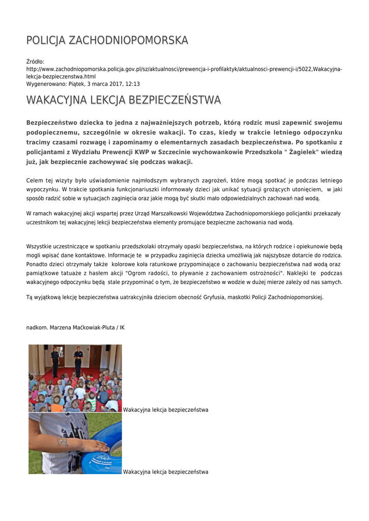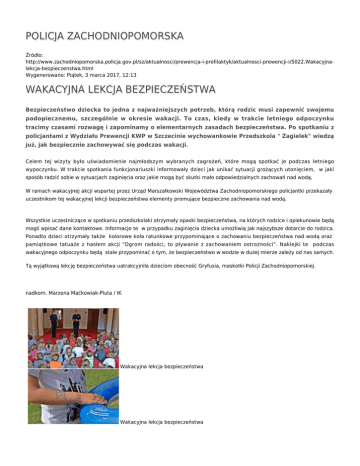 POLICJA ZACHODNIOPOMORSKA WAKACYJNA LEKCJA