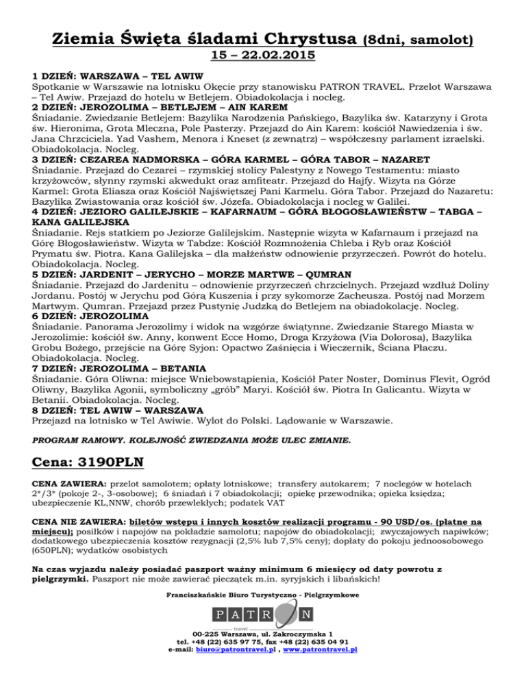 15-22.02.2015 ZIEMIA ŚW - ŚLADAMI CHRYSTUSA program