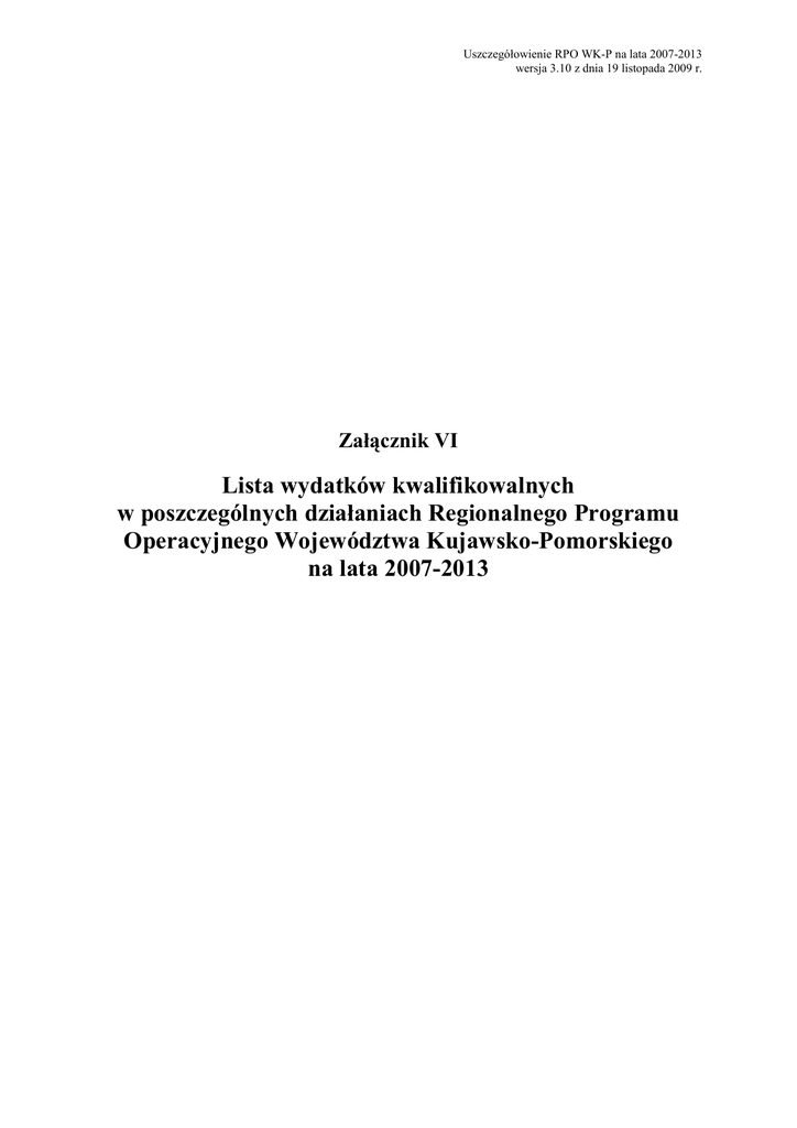 Załącznik VI Lista wydatków kwalifikowalnych w 3.10