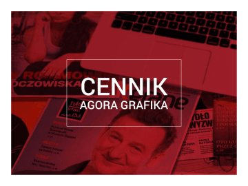 CENNIK AGORA GRAFIKA SKŁAD DTP Projekt graficzny gazety/czasopisma/książki to inaczej opracowanie makiety. W skład takiego opracowania wchodzi zaprojektowanie: okładki (strony tytułowej), unikalnych (wyłącznie na potrzeby jednej makiety) elementów layoutu, dobór fontów i związany z tym odpowiedni podział na szpalty oraz zaplanowanie układu ilustracji i zdjęć. Cena projektu może się zmieniać w zależności od stopnia skomplikowania publikacji. Skład DTP to wszystkie czynności związane z obróbką tekstu na stronie, dostosowanie go do graficznych założeń przygotowanej makiety, obróbka techniczna zdjęć pod odpowiedni wymiar i profil kolorystyczny publikacji, a także naniesienie poprawek korektorskich. Cena składu może wymagać indywidualnych ustaleń, jeśli łamanie będzie bardzo złożone (wykresy, tabele, infografiki itp.). INFO Projekt graficzny gazety / czasopisma / książki Usługa wymaga indywidualnego uzgodnienia czasu jej wykonania Projekt okładki książki Skład DTP (cena za stronę) Usługa wymaga indywidualnego uzgodnienia czasu jej wykonania CENA OD 1 000 zł 300 zł 30 zł
