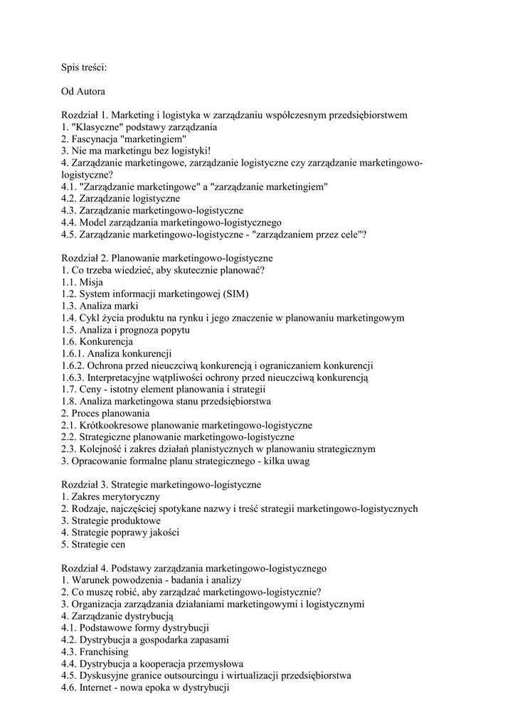 Spis treści: Od Autora Rozdział 1. Marketing i logistyka w