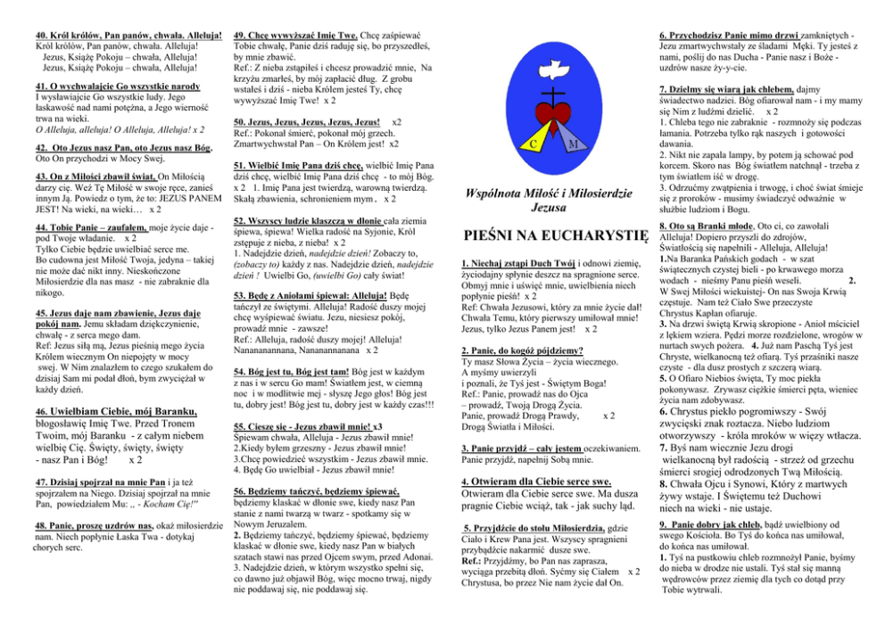 pieśni na eucharystię - Wspólnota Miłość i Miłosierdzie Jezusa