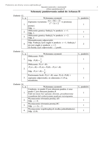 Schematy punktowania zadań do Arkusza II