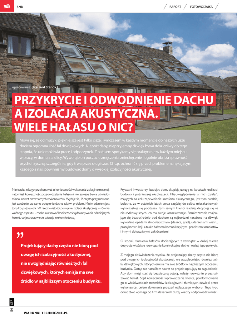Pokrycie i odwodnienie dachu a izolacja akustyczna