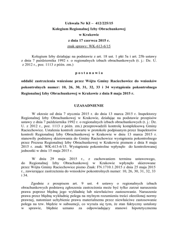 412/225/15 Kolegium Regionalnej Izby Obrachunkowej w Krakowie