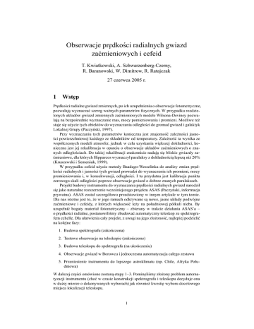 w znacznym stopniu jego zasi˛eg, b˛edzie nowa kamera CCD do spektrografu. Problemy napotkane przy stosowaniu