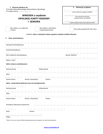 WNIOSEK o wydanie OPOLSKIEJ KARTY RODZINY I SENIORA