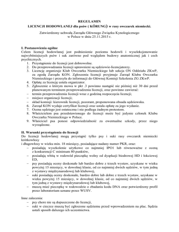 REGULAMIN LICENCJI HODOWLANEJ dla psów ( KÖRUNG) w
