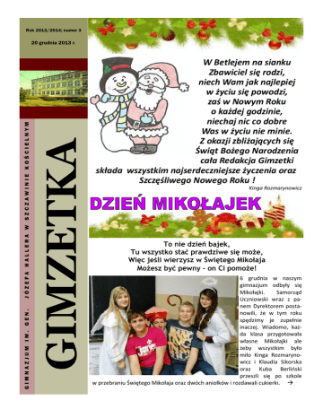 Numer 3, grudzień 2013 r. - Gimnazjum w Szczawinie Kościelnym