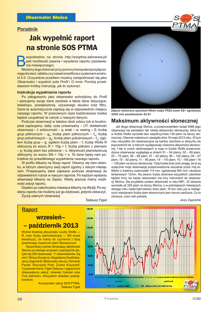 Jak wypełnić raport na stronie SOS PTMA Urania nr6/2013