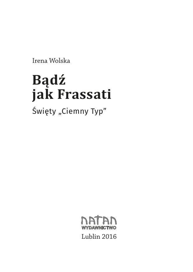Irena Wolska Bądź jak Frassati Święty „Ciemny Typ” WYDAWNICTWO Lublin 2016 Ilustracje i grafika z okładki: Małgorzata Piasecka Projekt okładki: Jerzy Piasecki Skład komputerowy: Szymon Strużyński Za zgodą Kurii Metropolitalnej w Lublinie z dnia 16 listopada 2016 r. Nr 722/Gł/2016 Bp dr Mieczysław Cisło, wikariusz generalny Ks. dr Krzysztof Kwiatkowski, kanclerz © Copyright by Wydawnictwo NATAN © Copyright by Irena Wolska ISBN 978-83-63875-72-5 Wydawnictwo NATAN ul. Skautów11B m 29, 20–055 Lublin tel. 81 533 17 25 [email protected] http://natan.pl Bądź jak Frassati Światowym Dniom Młodzieży w 2016 r. towarzyszyła pielgrzymka relikwii bł. Pier Giorgia Frassatiego do Polski. Na jego postać zwrócił uwagę papież Franciszek w Orędziu zapowiadającym spotkanie młodzieży w Krakowie. Mówił wtedy: Przychodzi mi na myśl przykład bł. Pier Giorgia Frassatiego. On mówił: „Jezus odwiedza mnie w Komunii świętej każdego ranka, a ja Mu się za to odwdzięczam w skromniejszy, dostępny mi sposób: odwiedzam Jego biedaków”. Pier Giorgio był młodzieńcem, który zrozumiał, co znaczy mieć serce miłosierne, wrażliwe na najbardziej potrzebujących. Przyglądając się tłumom modlącym się przy trumnie Piotra Jerzego można mieć pewność, że decyzja o tej szczególnej obecności Błogosławionego w naszej Ojczyźnie była opatrznościowa. Przesłanie Światowych Dni Młodzieży w tym roku brzmiało: Błogosławieni miłosierni, albowiem oni miłosierdzia dostąpią (Mt 5,7), a dzięki udziałowi Błogosławionego, zostało szczególnie uwypuklone. 3 Drogi Czytelniku! Popatrz na Frassatiego. Pomyśl – co takiego sprawia, że ten młodzieniec żyjący dawno i krótko (w latach 1901–1924), jest tak często cytowany przez papieży i przyciąga tłumy młodych pragnących być jak Frassati? 4 Bogactwo? Czy imponują Ci ludzie, którzy mają wielki majątek? Pier Giorgio miał, można rzec śmiało, ułatwione zadanie. Pochodził z bogatej rodziny. Ojciec był właścicielem poczytnego, liberalnego pisma „La Stampa”, pełnił też funkcję najpierw senatora, a potem ambasadora Włoch w Berlinie. Matka wywodziła się z arystokratycznego rodu i zajmowała się malarstwem. W domu nigdy niczego nie brakowało. Wszystkie potrzeby Pier Giorgia i jego młodszej siostryLuciany były zaspokojone, choć niewątpliwie nie byli oni otaczani zbytkiem. Mama była surowa i nie rozpieszczała dzieci, przywiązywała też dużą wagę do dyscypliny i porządku. Od najmłodszych lat Piotr Jerzy potrafił dzielić się z innymi tym, co miał. Wyznawał zasadę, że trzeba działać natychmiast. Potrafił wrócić do domu bez marynarki, płaszcza, a nawet butów, gdy tylko uznał, że ktoś potrzebuje tego bardziej niż on. Jako jedenastolatek włączył się w akcję zbierania sreberek od czekoladek, znaczków pocztowych i biletów tramwajowych, aby wesprzeć misjonarzy. Zdobył się nawet na to, aby zakwestionować decyzję ojca, który nie chciał pomóc komuś, od kogo poczuł alkohol. Z płaczem pobiegł do mamy i zapytał: A może jego przysłał tu Jezus? Sam żył bardzo oszczędnie. Nie dostawał 5 od rodziców żadnego kieszonkowego, a nawet te pieniądze, które otrzymywał na prezenty, przeznaczał na biednych. Oszczędzał na wszystkim, jeździł trzecią klasą, chodził pieszo. Za zaoszczędzone pieniądze kupował leki, opał, jedzenie, wszystko to, czego brakowało innym. Dzielił się zresztą nie tylko dobrami materialnymi. Znany był z tego, że poświęcał ludziom swój czas, rozmawiał z nimi. Zarażał ich swoją radością, gdyż uważał, że smutek jest najgorszą ze wszystkich chorób. Podłoża jego powstawania dopatrywał się w niewierze. Godził się na cierpienie i ból, jaki niesie ze sobą życie, ale zdecydowanie odrzucał smutek jako utratę nadziei. Powtarzał: katolik nie może nie być wesoły. Co dzień odwiedzał najuboższe dzielnice Turynu. Regularnie pojawiał się też w szpitalu i przytułku. Napisał kiedyś: Kto pomaga choremu, wypełnia dzieło wyjątkowe; nie wszyscy mają odwagę narażać się na sytuacje nieprzyjemne, a często także niebezpieczne. [...]. Kto opiekuje się chorym, [...] jest szczególnie błogosławiony, bo trudno nam jest obarczać się bólem innych, gdyż mamy sami tysiące własnych udręk i zmartwień”. Wykazywał olbrzymią dojrzałość i empatię w stosunku do chorych i opuszczonych. Często wspominał też 6 o miłosierdziu i w jego przypadku nie były to tylko słowa: [...] fundamentem naszej religii jest miłosierdzie, bez którego ona cała zwaliłaby się w gruzy, bo nie będziemy naprawdę katolikami, dopóki tego nie dopełnimy, i nie dostosujemy całego naszego życia do dwóch przykazań, na których opiera się cała istota wiary katolickiej: miłowanie Boga ze wszystkich sił i miłowania bliźniego jak siebie samych. Kariera naukowa? Czy dobre wykształcenie to najważniejsza rzecz w Twoim życiu? Znasz z doświadczenia powtarzane ciągle słowa, że trzeba się dobrze uczyć, aby „coś w życiu osiągnąć”? Te, lub podobne słowa, musiał też wielokrotnie słyszeć Pier Giorgio, bo nauka nie przychodziła mu łatwo. Spędzał wiele czasu nad książkami, ale jego oceny nie były rewelacyjne. Ojciec miał o to do niego pretensje i przynaglał, by się nie lenił. Miał nadzieję, że przekaże jedynemu synowi swoje pasje i zainteresowania. Tymczasem syn, wybierając liceum, kierował się możliwością uczestnictwa w codziennej Eucharystii, a studia na Królewskiej Politechnice w Turynie na wydziale inżynierii górniczej podjął ze względu na możliwość kontaktu z ludźmi ciężkiej pracy. Ojciec, sam 7 8 będąc człowiekiem niewierzącym, nawet nie próbował Pier Giorgia zrozumieć. Obserwując zachowanie syna, pogardliwie nazywał go ilpuro folio – zwykły wariat. Kiedy zobaczył jak klęczy i odmawia różaniec, bardzo się zdenerwował i zgłosił preten