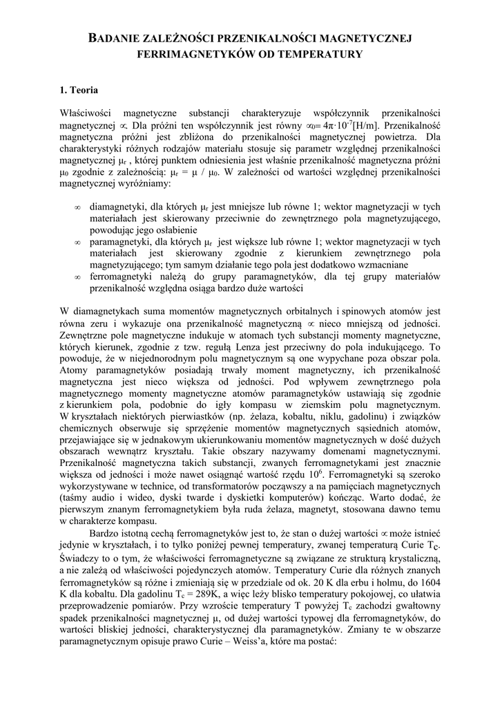 BADANIE ZALEŻNOŚCI PRZENIKALNOŚCI MAGNETYCZNEJ