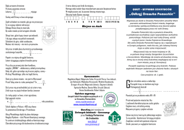 Dęby prawem chronione Po lewej pozostaw stronie Lekarza _ _ _ _ _ _ _ _ _ _ _ mijając A teraz skieruj swe kroki do miejsca, Którego stały nadzór daje mieszkańcom poczucie bezpieczeństwa W międzyczasie zaś, by poznać dewizę miasta tego, Odczytaj hasło Questu naszego: 11 Szukaj wód Drawy w lewo skręcając Zejdź schodami na mostek, gdy go nie przeoczysz To na wyspę właśnie wkroczysz Odnoga Drawy fosę tu tworzyła, By woda miasto przed wrogiem chroniła 1 2 3 4 5 6 7 8 9 10 11 12 13 14 15 16 Miejsce na skarb QUEST – WYPRAWA ODKRYWCÓW „Odkryj Drawsko Pomorskie” Wyprawa po skarb w Drawsku Pomorskim umożliwi Wam poznanie wielowiekowej historii miasta, bogatego w niemiecką i polską architekturę oraz docenid piękno przepływającej przez nie rzeki Drawy. Drawsko Pomorskie leży w powiecie drawskim, w południowo-wschodniej części województwa zachodniopomorskiego. Położone jest nad rzeką Drawą, wśród czystych jezior i lasów Pojezierza Drawskiego. Dla wielu Drawsko Pomorskie kojarzy się z największym w Europie poligonem, mało kto wie, jak ciekawą historię kryje w sobie sama miejscowośd. Skręć tam, gdzie kupcy towar sprzedawali, I do jego zakupu wszystkich namawiali. Schodami do góry, obok autobusów, Możesz iść inaczej – nie ma tu przymusów. Idź przez środek placu burmistrza przesławnego, zasłużonego Leopolda _ _ _ _ _ _ _ _ _ _ _ Miejscowośd leży na trasie krajowej nr 20, w połowie drogi miedzy Stargardem Szczecioskim a Szczecinkiem. Wjeżdżając do miasta od dowolnej strony, kieruj się w stronę wieży kościelnej znajdującej się w centrum miasta, przy pl. Konstytucji. 16 Popatrz na mijany okrąglak fontanny Latem ściągający piękne drawskie panny Przy ulicy po prawej stoi dom handlowy, niegdyś „DRAWA” - włókienniczy zakład przemysłowy. Dalej idź, gdzie sprzedaje się kruszec piękny, cenny W ulicę Piłsudskiego, tylko nie bądź bierny. Stań przy planie miasta - nie jest to Warszawa! Przed Tobą znów ta rzeka pamiętasz? To _ _ _ _ _ 6 Dziś przez nią przechodziłeś już aż cztery razy, Zrób to po raz piąty krokiem bardzo żwawym Za rzeką spójrz w lewo, a tam ogrodzony Dąb papieski rośnie w _ _ _ _ _ _ _ _ _ _ _ _ _ _ _ _ _ roku posadzony 1 Takich dębów w Polsce z 400 się chowa To potomstwo Chrobrego z Przemkowa Ulicą Piłsudskiego dojdź do placu kolejnego Niegdyś Rynkiem – dziś Placem Konstytucji zwanego. To centrum śródmiejskiego układu urbanistycznego Charakterystycznego dla budownictwa średniowiecznego Początek wyprawy na parkingu przy kościele. Podczas wędrówki Waszym zadaniem jest ułożenie hasła z ukrytych na trasie liter. Opracowanie: Magdalena Bącal, Małgorzata Fedas, Krzysztof Florys, Ewa Jakszuk, Jan Kalinowski, Władysław Kiryszewski, Wioletta Kowalewska, Grzegorz Kruczek, Małgorzata Lalewicz, Dagmara Lebiedź, Agnieszka Machna, Danuta Nitka, Urszula Sobczyk, Hanna Uwiałkowska, Robert Zołynia Opiekun wyprawy: Zespół Szkół Ponadgimnazjalnych nr 2 w Drawsku Pomorskim www.zsp2drawsko.pl www.naszyjnikpolnocy.pl Questing jest rozwijany na Zielonych Szlakach – Greenways przez Fundację Partnerstwo dla Środowiska www.fpds.pl www.greenways.pl Czas przejścia: ok. 1 godz. G dzie strzelista wieża w niebo bije, Początek trasy ze skarbem się kryje Późnogotycki kościół ___ _ ____________ _________ 5 Powstał już na przełomie wieku XIV i XV Przetrwał pożarów miasta bez liku I zachował charakterystyczne cechy gotyku: Ceglane mury, strzelistą wieżę Masywne przypory i piękne witraże Ustaw się teraz twarzą do północnego wejścia Tu na portalu ‘bestiariusze’ strzegą przejścia Znajdziesz wśród nich postacie mityczne Smoki, poczwary w wyglądzie komiczne Wróć teraz do wejścia głównego I na zachód skieruj się od niego Gdzie XVII-wieczny budynek stoi Co niegdyś służył magazynowaniu _ _ _ _ 15 W 30-leciu międzywojennym muzeum tu było I dawnym mieszkańcom miasta służyło Dziś ten najstarszy Drawska budynek Czeka na swój nowy, lepszy wizerunek Kierując się w lewo Uważaj na okorowane drzewo Skąd papież spogląda, A postać w _ _ _ _ _ _ Drawsko ogląda 10 Nieco dalej w lewo, kamienny cokół stoi Generał zeń na nas patrzy, Co niczego się nie boi. Sprzed pomnika w lewo zwrot i 100 kroków naprzód marsz Szukaj lustra, co jest w przedzie Za nim droga Cię powiedzie Po prawej stronie zatrzymaj się Tablicę czytaj, z niej dowiesz się Że dawniej baszty, tzw. _ _ _ _ _ _ _ _ _ Patrz na drzewa za tablicą przy ścieżce stojące Tam znajdziesz znaki dalej Cię wiodące I z górki przez park podążaj ku rzece Lecz nigdzie nie zbaczaj, bo bluszcz Cię oplecie 4 Ponad murami wznosiły się wymownie Przed mostem skręć w lewo i idź pod prąd Las koło rzeki, to bagienny ols nie grąd Karmiąc _ _ _ _ _ _ , widząc bluszcz Wzdłuż muru idź, do rzeki dojdź Zobaczysz most, na niego wejdź W kierunku szkoły śmiało idź Tablica historię opowie Ci. 2 Do kolejnego mostu wnet zawędrujesz już Czytaj uważnie, a wnet dowiesz się, że Szkoły patronem _ _ _ _ _ Sucharski jest. W dole szumi rzeka I swym pięknem nas urzeka Przed mostem zatrzymaj się przez chwilę Sprawdź, jak wysoko woda płynie? 9 Gdy spojrzysz w lewo, zobaczysz pomnik A na nim wielkie dwa _ _ _ _ _ _ Idź drogą pieszo-rowerową, za 100 m rzeczka płynie, Co z wodnych szlaków papieskich słynie. Kajakiem tędy możesz spłynąć I podczas urlopu odpocząć z rodziną Choć na martwą naturę Patrzeć nikt nas nie zmusza Spójrz w lewo za rzekę Ujrzysz dom stary autorstwa Gropiusa Nurt rzeki jest wartki, uważaj wędrowcze Najlepiej zaopatrz się w dobre gumowce Za rzeką budynek z dachem czerwonym, Który był dawniej dzieci miejscem ulubionym To słynny architekt wieku XX Tu w Drawsku powstały pierwsze dzieła jego A teraz wędrowcze wejdź śmiało na most, I ul. Brzozową idź wytrwale na wprost Tu odsapniesz chwileczkę, bo znajdziesz gablotkę I przeczytasz ci