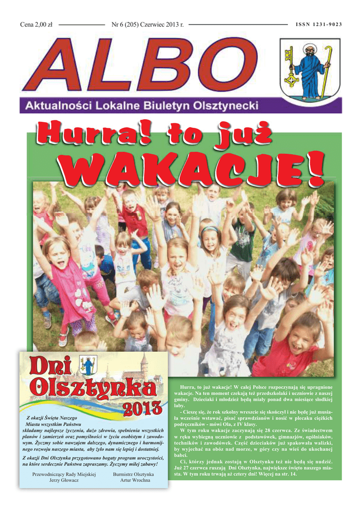Cena 2,00 zł Nr 6 (205) Czerwiec 2013 r. ISSN 1231-9023 Hurra! to już WAKACJE! Z okazji Święta Naszego Miasta wszystkim Państwu składamy najlepsze życzenia, dużo zdrowia, spełnienia wszystkich planów i zamierzeń oraz pomyślności w życiu osobistym i zawodowym. Życzmy sobie nawzajem dalszego, dynamicznego i harmonijnego rozwoju naszego miasta, aby żyło nam się lepiej i dostatniej. Z okazji Dni Olsztynka przygotowano bogaty program uroczystości, na które serdecznie Państwa zapraszamy. Życzymy miłej zabawy! Przewodniczący Rady Miejskiej Jerzy Głowacz Burmistrz Olsztynka Artur Wrochna Hurra, to już wakacje! W całej Polsce rozpoczynają się upragnione wakacje. Na ten moment czekają też przedszkolaki i uczniowie z naszej gminy. Dzieciaki i młodzież będą miały ponad dwa miesiące słodkiej laby. - Cieszę się, że rok szkolny wreszcie się skończył i nie będę już musiała wcześnie wstawać, pisać sprawdzianów i nosić w plecaku ciężkich podręczników - mówi Ola, z IV klasy. W tym roku wakacje zaczynają się 28 czerwca. Ze świadectwem w ręku wybiegną uczniowie z podstawówek, gimnazjów, ogólniaków, techników i zawodówek. Część dzieciaków już spakowała walizki, by wyjechać na obóz nad morze, w góry czy na wieś do ukochanej babci. Ci, którzy jednak zostają w Olsztynku też nie będą się nudzić. Już 27 czerwca ruszają Dni Olsztynka, największe święto naszego miasta. W tym roku trwają aż cztery dni! Więcej na str. 14. Gabinet Kosmetyczny Sekrety Piękna Zaprasza na: • • • • • • Gabinet Kosmetyczny ul. Mrongowiusza 6, Olsztynek tel. 723-446-735 www.sekretypiekna-olsztynek.pl Strona 2 Zabiegi pielęgnacyjne twarzy Pielęgnację dłoni i stóp Przedłużanie i stylizację paznokci Wizaż i stylizację Przedłużanie i zagęszczanie rzęs Depilację Do pierwszego zabiegu pielęgnacyjnego twarzy komputerowa diagnostyka kosmetologiczna gratis! ALBO 6 (205) Czerwiec 2013 r. WIEŚCI Z MAGISTRATU Rząd zdecydował o budowie dróg ekspresowych S7 i S51 Olsztynek czeka na nowe drogi 4 czerwca Rada Ministrów zmieniła uchwałę w sprawie ustanowienia wieloletniego „Programu budowy dróg krajowych na lata 2011-2015”. Do uchwały dodano załącznik nr 5, który pozwoli na szybkie przystąpienie do realizacji nowej perspektywy budżetu UE i jest pierwszym krokiem do realizacji inwestycji drogowych w ramach przyszłego Krajowego Programu Budowy Dróg Krajowych i Autostrad na lata 2014-2020. Przede wszystkim kontynu- owane będą inwestycje na drogach szybkiego ruchu, których celem jest budowa spójnej sieci drogowej. W załączniku wskazano listę inwestycji przewidzianych do wykonania w nowej perspektywie UE. Na liście znalazły się m.in. budowa dróg ekspresowych S7 Warszawa-Gdańsk na odcinku Olsztynek-Miłomłyn i Nidzica-Napierki oraz S51 z Olsztynka do Olsztyna. W celu zachowania ciągłości wykonania inwestycji drogowych GDDKiA będzie teraz miała możliwość uruchomienia postępowań przetargowych w 2013 r. na budowę dróg finansowaną w ramach nowej perspektywy budżetowej UE. V Integracyjny Rajd Rowerowy Gościńcem Niborskim 1 czerwca odbył się już V Integracyjny Rajd Rowerowy Gościńcem Niborskim. Uczestnicy wystartowali z Olsztyna, Bartąga, Rusi, Stawigudy, Nidzicy i Olsztynka, by wspólnie spotkać się w Archidiecezjalnym Ośrodku Charytatywnym Caritas Archidiecezji Warmińskiej w Rybakach nad jeziorem Łańskim, na historycznej granicy Warmii i Mazur. Impreza miała charakter oraz Komandor Rajdu dzić na starych mapach. rekreacyjno - integracyjny, Andrzej Małyszko. Organizatorzy rajdu: z racji uczestnictwa w niej Gościniec Niborski to powiat nidzicki, gmina Olszmieszkańców z kilku sąsia- fragment starego szlaku tynek, gmina Stawiguda, dujących ze sobą gmin. Warszawa – Królewiec. Gminny Ośrodek Kultury Nad przebiegiem całości Przez setki lat pełnił ważną w Stawigudzie, Nadleśnicczuwali: Burmistrz Olsztyn- rolę komunikacyjną, dziś two Nowe Ramuki. ka Artur Wrochna, Zastępca zapomniany, wart jest przyZa rok zapraszamy na Wójta Gminy Stawiguda pomnienia. Trakt przez stu- kolejną edycję! Irena Derdoń, Dyrektor PCK lecia w zasadzie nie ulegał w Olsztynie Andrzej Karski zmianom, co można prześleKarol Kijkowski ALBO 6 (205) Czerwiec 2013 r. Ekofestyn w Olsztynku W Gminie Olsztynek od początku roku prowadzona jest kampania informacyjna związana z tzw. „rewolucją śmieciową”. W ramach tych działań, na rynku miasta Olsztynek, w dniu 10 czerwca został zorganizowany ekofestyn, którego tematem przewodnim było prawidłowe zagospodarowywanie odpadów. Uczestnikami imprezy byli najmłodsi mieszkańcy gminy: przedszkolaki oraz uczniowie z klas I-III. Uczestnicy pikniku, wzięli udział w wielu konkursach, grach i zabawach prowadzonych przez doświadczonych animatorów. Dzieci uczyły się segregować odpady, zakładać kompostownik na bioodpady, poznały ekologiczne sposoby wytwarzania prądu i wiele innych ekologicznych zachowań. Największym zainteresowaniem cieszyło się „Zielone Kino” - ekspozycja składająca się z systemu rowerów, które podczas jazdy wytwarzały prąd napędzający komputer i rzutnik, wyświetlający ekologiczny pokaz multimedialny. Momentem szczególnym imprezy było uroczyste wręczenie Certyfikatu Mecenasa Edukacji Ekologicznej Urzędowi Miejskiemu w Olsztynku, na ręce zastępcy burmistrza oraz sekretarz miasta. Jest to specjalny tytuł, którym honorowane są m. in. gminy wspierające edukację ekologiczną. ZBI Zgromadzenie Ogólne Cittaslow w Turcji W jednym z tureckich miasteczek Cittaslow, Seferihisarze, w dniach 7-9 czerwca odbyło się Zgromadzenie Ogólne Międzynarodowego Stowarzyszenia Cittaslow. Jak co roku wydarzenie to zgromadziło członków stowarzyszenia z całego świata m.in. z Włoch, Korei Pd., Chin, Holandii, Węgier, Francji, Belgii, Niemiec, Wielkiej Brytanii, Stanów Zjednoczonych oraz Polski. Polską delegacj