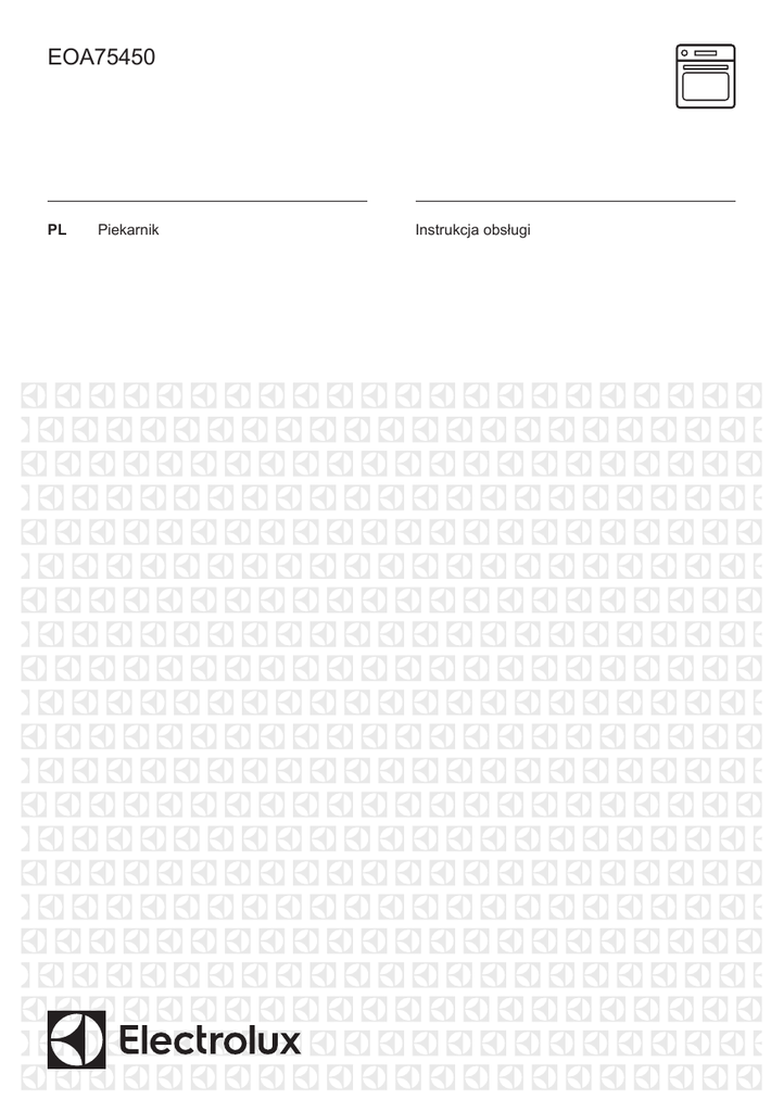 EOA75450 PL Piekarnik Instrukcja obsługi 2 www.electrolux.com SPIS TREŚCI 1. INFORMACJE DOTYCZĄCE BEZPIECZEŃSTWA........................................... 3 2. WSKAZÓWKI DOTYCZĄCE BEZPIECZEŃSTWA............................................ 4 3. OPIS URZĄDZENIA........................................................................................... 7 4. PRZED PIERWSZYM UŻYCIEM........................................................................7 5. CODZIENNA EKSPLOATACJA......................................................................... 8 6. FUNKCJE ZEGARA......................................................................................... 10 7. KORZYSTANIE Z AKCESORIÓW................................................................... 11 8. DODATKOWE FUNKCJE.................................................................................12 9. WSKAZÓWKI I PORADY................................................................................. 12 10. KONSERWACJA I CZYSZCZENIE................................................................ 21 11. ROZWIĄZYWANIE PROBLEMÓW................................................................ 25 12. INSTALACJA.................................................................................................. 26 13. EFEKTYWNOŚĆ ENERGETYCZNA............................................................. 28 Z MYŚLĄ O TOBIE Dziękujemy za zakup urządzenia Electrolux. Jest ono owocem dziesięcioleci doświadczeń i innowacji. To pomysłowe i stylowe urządzenie zostało zaprojektowane z myślą o Tobie. Użytkując je, możesz mieć zawsze pewność uzyskania wspaniałych efektów. Witamy w świecie marki Electrolux! Zapraszamy na naszą witrynę internetową, aby: Otrzymać wskazówki dotyczące użytkowania, broszury, pomoc w rozwiązywaniu problemów oraz informacje dotyczące serwisu: www.electrolux.com Zarejestrować swój produkt i uprościć jego obsługę serwisową: www.registerelectrolux.com Nabyć akcesoria, materiały eksploatacyjne i oryginalne części zamienne do swojego urządzenia: www.electrolux.com/shop OBSŁUGA KLIENTA Zalecamy stosowanie oryginalnych części zamiennych. Kontaktując się z autoryzowanym centrum serwisowym, należy przygotować poniższe dane: model, numer produktu, numer seryjny. Stosowne informacje można znaleźć na tabliczce znamionowej. Ostrzeżenie / Przestroga – Informacje dotyczące bezpieczeństwa Ogólne informacje i wskazówki Informacje dotyczące środowiska naturalnego Producent zastrzega sobie możliwość wprowadzenia zmian bez wcześniejszego powiadomienia. POLSKI 1. 3 INFORMACJE DOTYCZĄCE BEZPIECZEŃSTWA Przed instalacją i rozpoczęciem eksploatacji urządzenia należy uważnie zapoznać się z załączoną instrukcją obsługi. Producent nie odpowiada za uszkodzenia i obrażenia ciała spowodowane nieprawidłową instalacją i eksploatacją. Należy zachować instrukcję wraz z urządzeniem do wykorzystania w przyszłości. 1.1 Bezpieczeństwo dzieci i osób o ograniczonych zdolnościach ruchowych, sensorycznych lub umysłowych • • • • • • • Urządzenie mogą obsługiwać dzieci po ukończeniu ósmego roku życia oraz osoby o ograniczonych zdolnościach fizycznych, sensorycznych lub umysłowych, a także nieposiadające odpowiedniej wiedzy lub doświadczenia, jeśli będą one nadzorowane lub zostaną poinstruowane w zakresie bezpiecznego korzystania z urządzenia i będą świadome związanych z tym zagrożeń. Nie należy pozwalać, aby dzieci bawiły się urządzeniem. Wszystkie opakowania należy przechowywać poza zasięgiem dzieci. Dzieci i zwierzęta nie powinny zbliżać się do pracującego lub stygnącego urządzenia. Łatwo dostępne elementy urządzenia mocno się nagrzewają. Jeśli urządzenie jest wyposażone w blokadę uruchomienia, zaleca się, aby ją włączyć. Czyszczeniem i konserwacją nie mogą zajmować się dzieci bez nadzoru dorosłych. Dzieci poniżej 3 roku życia nie powinny znajdować się w pobliżu urządzenia, jeśli nie są pod stałym nadzorem. 4 www.electrolux.com 1.2 Ogólne zasady bezpieczeństwa • • • • • • • • Instalacji urządzenia i wymiany jego przewodu zasilającego może dokonać wyłącznie osoba o odpowiednich kwalifikacjach. Podczas pracy urządzenia jego wnętrze silnie się nagrzewa. Nie dotykać elementów grzejnych w urządzeniu. Podczas wyjmowania i wkładania akcesoriów lub naczyń należy zawsze używać rękawic kuchennych. Przed przystąpieniem do konserwacji urządzenia należy odłączyć je od zasilania. Aby uniknąć porażenia prądem, przed przystąpieniem do wymiany żarówki należy upewnić się, że urządzenie jest wyłączone. Nie czyścić urządzenia za pomocą myjek parowych. Do czyszczenia szyb w drzwiach nie należy używać ściernych środków czyszczących ani ostrych, metalowych myjek, ponieważ mogą one porysować powierzchnię, co może skutkować pęknięciem szkła. Jeśli przewód zasilający jest uszkodzony, ze względów bezpieczeństwa musi go wymienić producent, autoryzowane centrum serwisowe lub inna wykwalifikowana osoba. Aby wymontować prowadnice blach, należy odciągnąć najpierw ich przednią, a następnie tylną część od bocznych ścianek. Zamontować prowadnice blach w odwrotnej kolejności. 2. WSKAZÓWKI DOTYCZĄCE BEZPIECZEŃSTWA 2.1 Instalacja OSTRZEŻENIE! Urządzenie może zainstalować wyłącznie wykwalifikowana osoba. • • Usunąć wszystkie elementy opakowania. Nie instalować ani nie używać uszkodzonego urządzenia. • • • • • Postępować zgodnie z instrukcją instalacji załączoną do urządzenia. Zachować ostrożność podczas przenoszenia urządzenia, ponieważ jest ono ciężkie. Zawsze używać rękawic ochronnych. Nigdy nie ciągnąć urządzenia za uchwyt. Zachować minimalne odstępy od innych urządzeń i mebli. Należy zadbać o to, aby meble itp. znajdujące się obok urządzenia i nad POLSKI • n