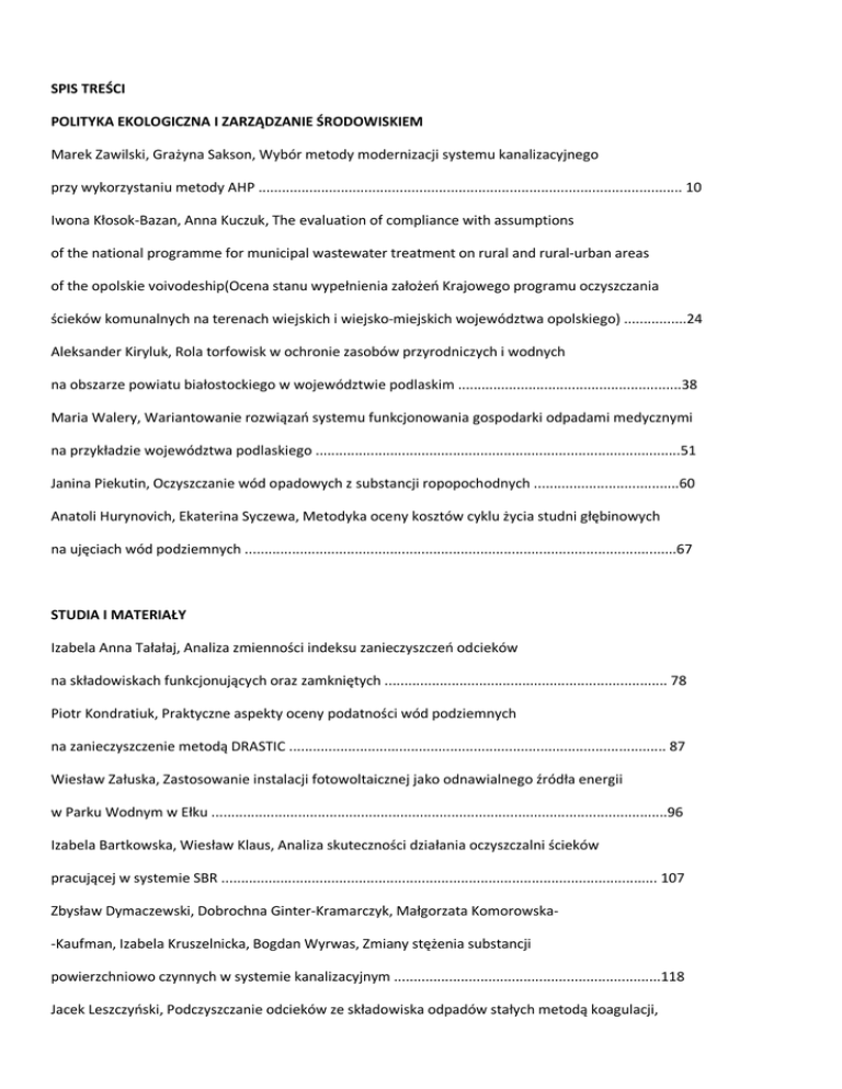 SPIS TREŚCI POLITYKA EKOLOGICZNA I ZARZĄDZANIE
