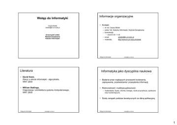 Wstęp do Informatyki Informacje organizacyjne Literatura