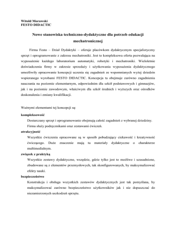Witold Morawski FESTO DIDACTIC Nowe stanowiska techniczno