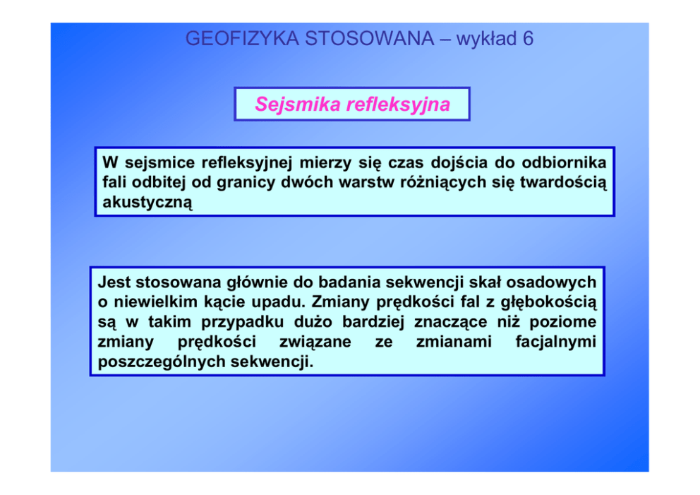 GEOFIZYKA STOSOWANA – wykład 6 Sejsmika refleksyjna W sejsmice refleksyjnej mierzy się czas dojścia do odbiornika fali odbitej od granicy dwóch warstw różniących się twardością akustyczną Jest stosowana głównie do badania sekwencji skał osadowych o niewielkim kącie upadu. Zmiany prędkości fal z głębokością są w takim przypadku dużo bardziej znaczące niż poziome zmiany prędkości związane ze zmianami facjalnymi poszczególnych sekwencji. Podstawowy model sejsmiki refleksyjnej zakłada istnienie przedziałów głębokości o charakterystycznych prędkościach fal, tzw. prędkościach interwałowych, które mogą być stałe wewnątrz homogenicznej jednostki geologicznej lub uśrednione w interwale zawierającym więcej niż jedną jednostkę geologiczną. Prędkość interwałowa może więc być równa: Vi = zi τi gdzie: zi - miąższość i-tej warstwy τi - czas potrzebny fali na przejście przez warstwę lub: n Vi = ∑ Zk k =1 n ∑τk k =1 n = ∑Vk ⋅ τ k k =1 n ∑τ k k =1 gdy interwał głębokościowy obejmuje n warstw. Pojedyncza pozioma granica odbijająca A’ 0 x α α x/2 x z A α α x/2 czas dojścia fali z punktu 0 do A lub A’ jest równy: 2 x 2 ⋅ z2 + 4 = t (x ) = V x 2 + 4z 2 V Równanie można także przedstawić w postaci kanonicznej: V 2t 2 x2 − 2 =1 2 4z 4z Jest to równanie hiperboli symetrycznej względem osi czasu której wierzchołek ma współrzędne: ⎧ ⎛ H : ⎜ x0 = 0, ⎨ ⎝ ⎩ t0 = 2 z ⎞⎫ ⎟⎬ V ⎠⎭ Równanie hodografu można zapisać w postaci: x2 t =t + 2 V 2 lub: ⎡ ⎛ x ⎞ ⎟⎟ t = t0 ⎢1 + ⎜⎜ ⎢⎣ ⎝ Vt0 ⎠ 2 0 2 ⎤ ⎥ ⎥⎦ 1 2 2z ⎡ ⎛ x ⎞ = ⎢1 + ⎜ ⎟ V ⎢⎣ ⎝ 2 z ⎠ 2 ⎤ ⎥ ⎥⎦ 1 2 Korzystając ze wzoru: (1 + y ) α a (a − 1) 2 a (a − 1)...(a − n + 1) n = 1 + ay + y + ... + y + ... n! 2! i przyjmując 1 α= 2 1 ⎞ 2 ⎛ x y = ⎜⎜ 2 2 ⎟⎟ ⎝ V t0 ⎠ 2 = x 2z równanie hodografu można rozwinąć w szereg potęgowy: ⎛ 1 ⎛ x ⎞2 1 ⎛ x ⎞4 ⎞ t = t 0 ⎜1 + ⎜ ⎟ − ⎜ ⎟ + ... ⎟ ⎜ 2 ⎝ 2z ⎠ 8 ⎝ 2z ⎠ ⎟ ⎝ ⎠ Jeśli długość rozstawu jest dużo mniejsza od głębokości granicy (x>>z) wówczas można zaniedbać wyrazy wyższych rzędów. Otrzymamy wtedy przybliżoną zależność: 2 ⎡ 1⎛ x ⎞ ⎤ ⎟⎟ ⎥ t ≈ t 0 ⎢1 + ⎜⎜ ⎢ 2 ⎝ Vt 0 ⎠ ⎥ ⎣ ⎦ będącą równaniem paraboli. Oznacza to, że dla małych x hiperbola może być przybliżona wycinkiem paraboli. t(x) t2 Δt12 t1 t0 -x1 ΔT x1 x2 x Na podstawie ostatniego równania możemy zdefiniować następujące pojęcie: Δt ij = t i − t j ≈ x i2 − x 2j 2V 2 t 0 zwane przesunięciem (moveout) oraz poprawkę kinematyczną (normal moveout - NMO) : x2 ΔTN ( x ) = t ( x ) − t0 = 2V 2 t0 Dla płytszych granic trzeba uwzględnić trzeci człon szeregu, wówczas: x2 x4 ΔTN ( x ) = − 3 4 2 2V t0 8t0V Poprawka kinematyczna ΔT jest funkcją odległości detektora, prędkości fali oraz głębokości zalegania granicy odbijającej. Wyznaczenie tej wartości z hodografu pozwala na obliczenie prędkości fali: V ≈ x 2t0 ΔTN ( x ) a następnie głębokości zalegania granicy : Vt0 Z= 2 Model wielowarstwowy z poziomymi granicami W modelu wielowarstwowym odbicie zachodzi na granicy każdej warstwy. Dla rozstawów pomiarowych małych w porównaniu z głębokością granicy odbijającej hodograf nadal ma postać hiperboli, jednak prędkość fali dla układu wielowarstwowego zastępuje się prędkością średnią lub w dokładniejszych metodach interpretacji prędkością średniokwadratową: VRMS 1 ⎤ 2 ⎡ 2 V ∑ i τi ⎥ ⎢ ⎥ = ⎢ i =1n ⎥ ⎢ τ ∑ i ⎥ ⎢ ⎦ ⎣ i =1 n τi – czas przejścia fali przez i-tą warstwę t(x) hiperbola rzeczywisty hodograf x Odchylenie rzeczywistego hodografu od hiperboli zwiększa się ze wzrostem x. Dla x<<z czas dojścia fali odbitej od n-tej granicy zalegającej na głębokości z jest w przybliżeniu równy: tn ≈ a poprawka kinematyczna ΔT: (x ΔTn = 2 2 + 4z V RMS ) 1 2 x2 2V RMS t 0 n Na podstawie wartości ΔTn można wyznaczyć prędkość średniokwadratową dla serii n warstw. Wyznaczając VRMS dla sąsiednich granic odbijających można wyznaczyć prędkości interwałowe: ⎡Vn2 t n Vn = ⎢ ⎣ 1 2 − Vn−1t n−1 ⎤ 2 t n − t n−1 ⎥ ⎦ Indeksy n i n-1 oznaczają czas dojścia i prędkość średniokwadratową fal odbitych od n-tej i n -1-szej granicy. Pojedyncza nachylona granica odbijająca W przypadku nachylonej granicy odbijającej w równaniu hodografu występuje dodatkowy człon zależny od kąta upadu granicy δ. t= (x 2 ) + 4 z + 4 xz sin δ V Równanie hodografu w postaci kanonicznej: ( V 2t 2 x + 2 z sin δ ) − =1 2 2 2 2 4 z cos δ 4 z cos δ 2 t(x) t(+x) t(-x) ΔTu t0 tmin -x +x X δ Wierzchołek hiperboli jest przesunięty w kierunku przeciwnym do kierunku zapadania granicy. Uproszczone równanie hodografu ma postać: ( ) 1 ⎤ 2 ⎡ x + 4 xz sin δ t ≈ t 0 ⎢1 + ⎥ 2 2 2 V t ⎢⎣ ⎥⎦ 0 2 Można zdefiniować poprawkę dynamiczną upadową: ΔTd = t ( + x ) − t ( − x ) = 2 x sin δ V Dla małych kątów upadu (sinδ ≈ δ) możemy obliczyć kąt upadu: V ⋅ ΔTd δ = 2x Potrzebną w tym wzorze prędkość obliczamy używając uśrednionej poprawki kinematycznej (NMO) t (+ x ) + t (− x ) − 2t 0 ΔT0 = 2 V ≈ x 2t0 ΔT0 Metody interpretacyjne stosowane w sejsmice refleksyjnej A. Metoda Greena (model dwuwarstwowy z poziomą granicą) Po podniesieniu stronami do kwadratu równania hodografu otrzymuje się: 2 2 2 4 1 4 z x + z 2 x t2 = = + 2 2 2 V V V Na wykresie w układzie x2 – t2 zależność ta przedstawia prostą, której nachylenie jest równe 1/V2, a przecięcie z osią czasu (x=0) zachodzi dla: 2 4 z t 02 = 2 V więc z wykresu możemy wyznaczyć prędkość fali oraz głębokość granicy t2 t02 x2 Odczytując z sejsmogramu czasy dojścia fali do poszczególnych geofonów nanosimy je na wykres, a następnie metodą najmniejszych kwadratów d