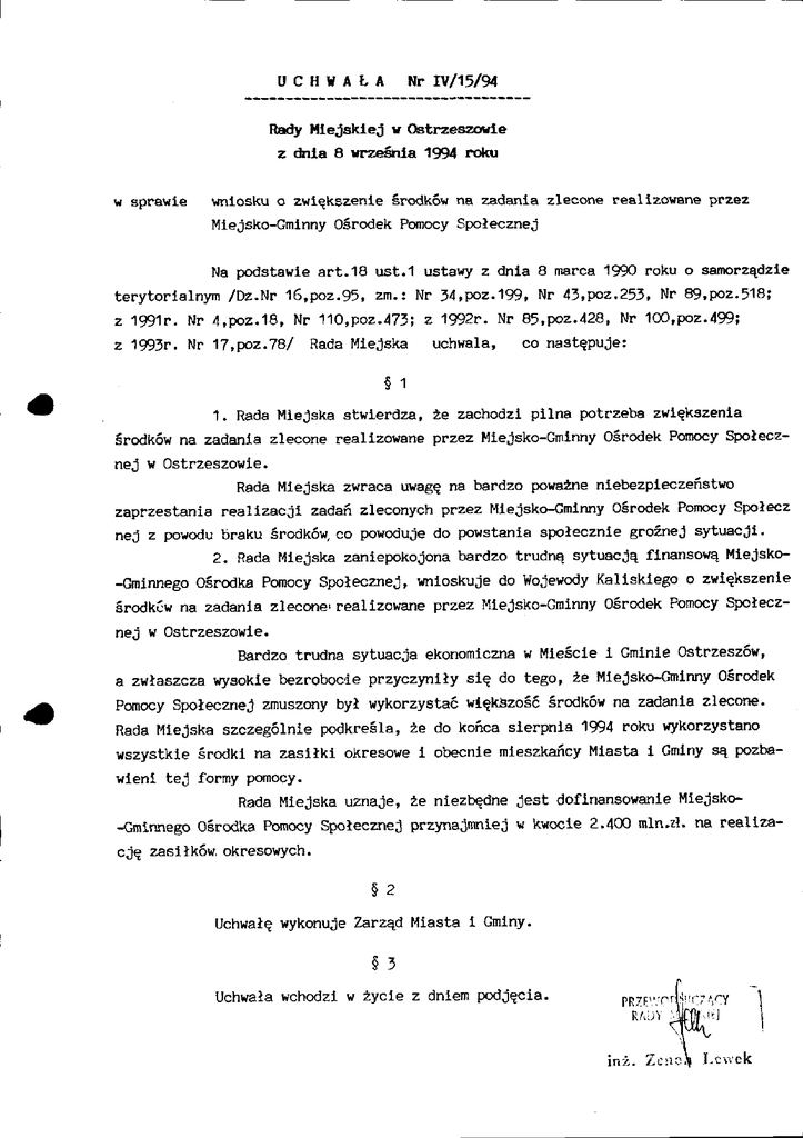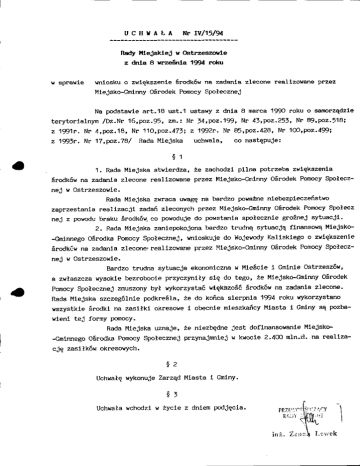 Rada MieJska szczeg6lnie podkregla, 2e do ko6ca slerpnla 1994 roku rrykorzystano