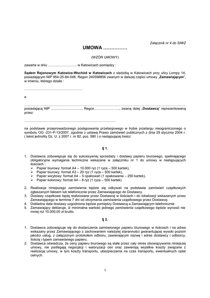 wzór umowy - załącznik nr 4 - Sąd Rejonowy Katowice