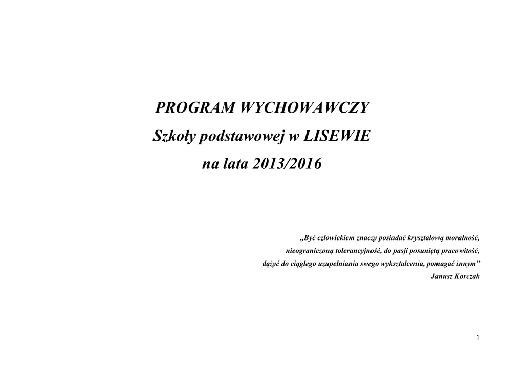 PROGRAM WYCHOWAWCZY Szkoły podstawowej w LISEWIE na