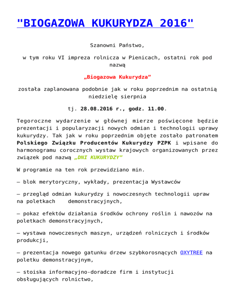 BIOGAZOWA KUKURYDZA 2016
