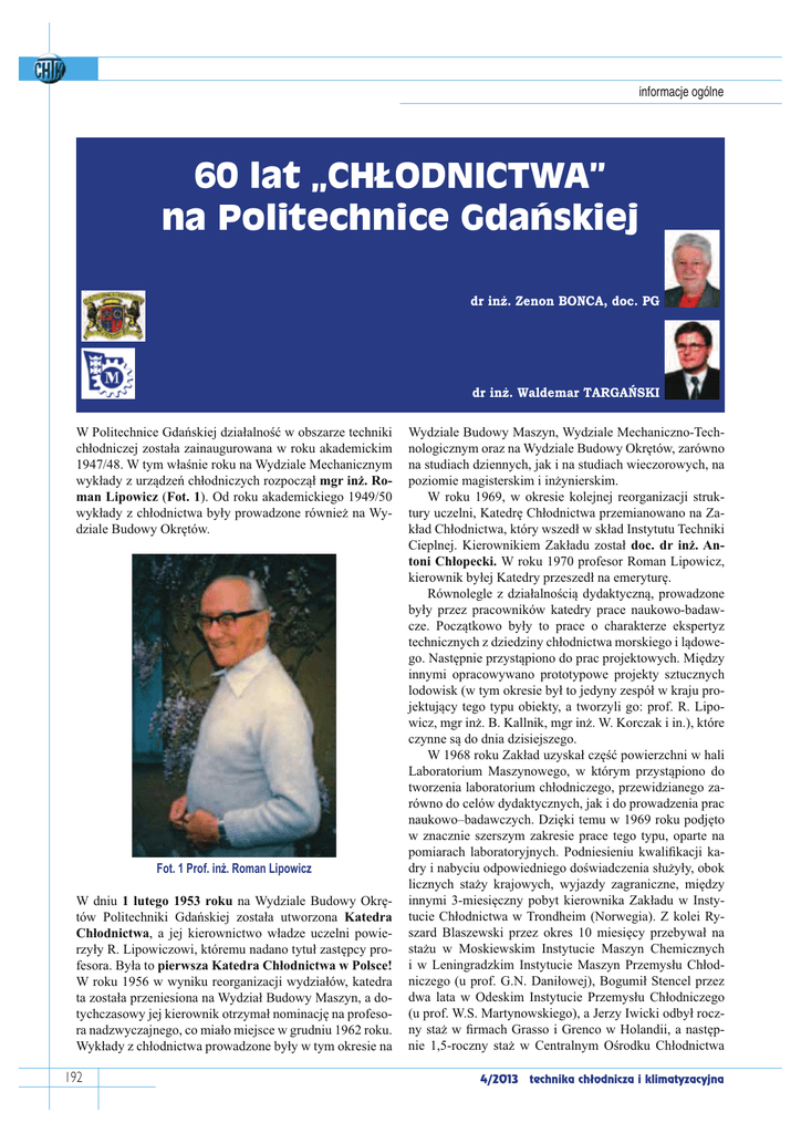 60 lat „CHŁODNICTWA” - Technika chłodnicza i klimatyzacyjna