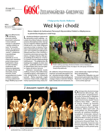 29 maja 2011 nr 21/265 I Pielgrzymka Nordic Walkerów Weź kije i chodź tekst Krzysztof Król redaktor wydania owa filharmonia nad Wartą, pierwsze lokalne przymiarki wyborcze i nowe żużlowe emocje w Lubuskiem – kolejny tydzień za nami. To wszystko ważne, ale są jeszcze mniej spektakularne „newsy”. 9 diakonów z paradyskiego seminarium (sylwetki str. IV–V) rozpoczęło rekolekcje przed święceniami kapłańskimi. Może to mało medialne wydarzenie, ale święcenia kapłańskie 28 maja to dla diecezji niezwykle ważny moment. Przed neoprezbiterami trudne zadanie: wnoszenia w naszą codzienność Boga. Módlmy się za nich! L ubuskie jest idealnym miejscem do uprawiania nordic walkingu – zauważa Anna Maria Fedurek, rzecznik prasowy diecezjalnej Caritas. Szacuje się, że w regionie z kijkami regularnie chodzi już ok. 3 tys. osób. Pielgrzymi wyruszą na trasę 13 sierpnia. Pomyślano o doświadczonych nordic walkerach i tych zupełnie początkujących. Dłuższa trasa liczy 17 km, a krótsza 11. Uczestnicy pierwszej wyruszą z Bledzewa, a drugiej z Chyciny. Obie grupy spotkają się na Mszy św. w Gorzycy, a potem ruszą do międzyrzeckiego sanktuarium. – To pielgrzymka dla każdego bez względu na wiek i stan ducha – podkreśla dyrektor Caritas ks. Marek Kidoń, który sam się wybiera. Zapisy do końca czerwca. Zdaniem instruktorki nordic walking Grażyny Wyczałkowskiej, współpracującej z diecezjalną Caritas, pielgrzymka to doskonały pomysł. – Mamy wspaniałe i ciągle nieznane miejsca kultu religijnego, mamy wyznaczone trasy, mamy nor- Archiwum Grażyny Wyczałkowskiej N Marsz z kijkami do Sanktuarium Pierwszych Męczenników Polskich w Międzyrzeczu to pionierska inicjatywa w skali kraju. Nordic walking uprawiają członkowie klubów seniora działających pod egidą diecezjalnej Caritas. Na zdjęciu: Na czele grupy instruktorka Grażyna Wyczałkowska dic walkerów, których fantastycznie inspiruje i prowadzi diecezjalna Caritas – zauważa trenerka i dodaje: – Jest to też alternatywa dla poszukujących swojego miejsca w kościele młodych ludzi. Serdecznie ich namawiam, bo ks. Witold Lesner Z Jezusem razem dla Jezusa O statniego dnia ekumenicznego Weekendu Qlturalnego „Abyśmy byli jedno” zorganizowanego przez chrześcijan w Miejskim Ośrodku Kultury w Głogowie wystąpił ekumeniczny zespół Trzecia Godzina Dnia (TGD). – „Wierzyć to znaczy chodzić za Jezusem i żyć z Nim na co dzień” – śpiewali muzycy w piosence „Hosanna”. Kolejne utwory: „Wiara czyni cuda”, „Po prostu jaśniej” czy „Proszę przyjdź” porwały do wspólnej modlitwy przybyłych chrześcijan różnych wyznań. – Skoro mamy budować królestwo Boże na ziemi, nie można być biernym – powiedział obecny na koncercie Krzysztof Kiżuk. Trzydniowe warsztaty muzyczne oraz koncerty Royal Rap, Mate.O i TGD zgromadziły w sumie ponad tysiąc osób. • 29 maja 2011 Gość Niedzielny Głogów, 22 maja. Koncert ekumenicznego zespołu Trzecia Godzina Dnia bardzo szybko przekształcił się w modlitwę śpiewem może właśnie idąc z kijami do Pięciu Braci odnajdą Boga. Pielgrzymka odbędzie się pod honorowym patronatem bp. Stefana Regmunta. Szczegółowe informacje – www.caritas.zgora.pl kk gość zielonogórsko-gorzowski gość zielonogórsko-gorzowski Katarzyna Gauza Hip-hopowe baletnice z „Metra” Ś wiebodzin . – Mamy zdolną i fantastyczną młodzież. W Świebodzinie jest niewiele możliwości do tego typu przedstawień, dlatego chcieliśmy pokazać naszych uczniów – mówi Małgorzata Sawiak, jedna z organizatorów. „Na strunach szyn” – to tytuł spektaklu muzycznego, który odbył się 18 maja w świebodzińskim Domu Kultury. Inscenizację bazującą na musicalu „Metro”, przedstawili uczniowie i absolwenci Gimnazjum nr 1 w Świebodzinie. – Zdarzyła mi się mała wpadka. Zamiast zaśpiewać „mam willę z basenem”, zaśpiewałam „mam willę z facetem” – śmieje się Kinga Taront, jedna z solistek. Choreografię przygotował Tomasz Szylko, a kostiumy i scenografię Elżbieta Szymańczuk. Scenariusz przekształciła i opracowała Małgorzata Sawiak. – Przyjechaliśmy specjalnie z Zielonej Góry, bo występowała nasza wnuczka. Talenty trzeba pokazywać i rozwijać – mówili ze wzruszeniem Janina i Aleksander Tarontowie. kg W O wystawie chętnie opowiadał harcmistrz Jerzy Zgodziński Z i e l o n a G ó r a . „Ws z ystko zaczęło się od książki…” – to tytuł wystawy, zorganizowanej 16 maja w Wojewódzkiej Bibliotece im. C.K. Norwida z okazji 100-lecia powstania ZHP i 50-lecia zielonogórskich Korczakowców. – Postanowiliśmy spojrzeć na harcerstwo przez pryzmat książki – od pierwszych publikacji dotyczących harcerstwa, aż do wydawnictw dnia dzisiejszego – mówił harcmistrz Jerzy Zgodziński, jeden z organizatorów. Podczas wystawy prezentowane są również elementy działalności harcersko-korczakowskiej, a także mundurów skautów. – Harcerstwo to fajna zabawa i forma spędzania wolnego czasu – wspomina Urszula Świderska-Włodarczyk, była harcerka i współautorka książki „Na tropach harcerskiej metodyki. 100 lat harcerstwa polskiego.” kg Białe fartuchy u Czarnej Madonny Jasna Góra. Pielgrzymka Służby Zdrowia zgromadziła u stóp Maryi lekarzy, pielęgniarki, położne, ratowników pogotowia, rehabilitantów, farmaceutów i duszpasterzy. Corocznym rekolekcjom od 20 do 22 maja przewodził bp Stefan Regmunt, przewodniczący Konferencji Episkopatu Polski ds. Służby Zdrowia. Podczas sobotniego Apelu Jasnogórskiego biskup modlił się: – Jest to dla nas czas audiencji u Ciebie, Maryjo, u Matki największego Lekarza, największego Dawcy Życia. Przychodzimy, by zawierzać wszystkie nasze sprawy, nasze radości i troski, Tej, która jest zawsze blisko człowieka cierpiącego i tym, którzy cierpiącemu służą – mówił bp Regmunt. wl [email protected] Adres redakcji: 65-
