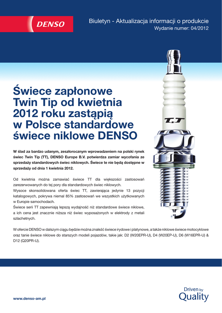 Świece zapłonowe Twin Tip od kwietnia 2012 roku zastąpią w