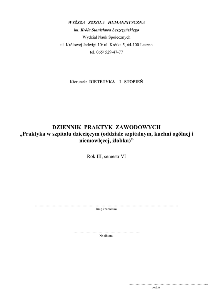 dietetyka3-dziennik_.. - Wyższa Szkoła Humanistyczna w Lesznie