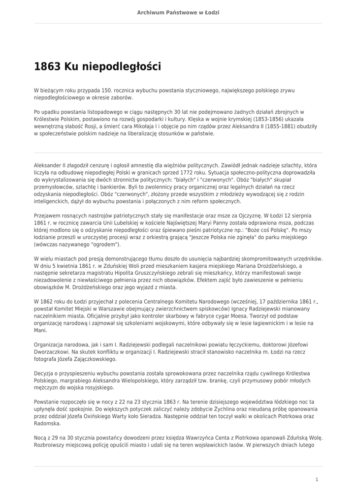 1863 Ku niepodległości - Archiwum Państwowe w Łodzi