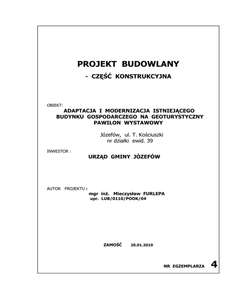 352-(.7%8'2:/$1< &=ĉĝû.216758.&<-1$ 2%,(.7 $'$37$&-$,02'(51,=$&-$,671,(-Ą&(*2 %8'<1.8*2632'$5&=(*21$*(2785<67<&=1< 3$:,/21:<67$:2:< -y]HIyZXO7.RĞFLXV]NL QUG]LDáNLHZLG ,1:(6725 85=Ą'*0,1<-Ï=()Ï: $8725352-(.78 PJULQĪ0LHF]\VáDZ)85/(3$ XSU/8%322. =$02ĝû 15(*=(03/$5=$ =$:$572ĝû235$&2:$1,$ ,2&(1$7(&+1,&=1$ ,,23,67(&+1,&=1< &KDUDNWHU\VW\NDRELHNWX 2SLVNRQVWUXNF\MQ\ :\W\F]QHUHDOL]DFMLL]DOHFHQLDWHFKQLF]QH =DáRĪHQLDNRQVWUXNF\MQH &=ĉĝû5<681.2:$ 5\VQU5]XWSDUWHUX :LĊĨEDGDFKRZD , 2&(1$7(&+1,&=1$ .216758.&-,,671,(-Ą&(*2%8'<1.8*2632'$5&=(*2 :=:,Ą=.8=352-(.72:$1Ą$'$37$&-Ą 3U]HGPLRWRZ\EXG\QHNJRVSRGDUF]\REMĊW\SURMHNWHPDGDSWDFMLZQLHRGOHJá\P F]DVLHE\áSRGGDQ\RGQRZLHQLXHOHZDFMLRUD]Z\PLDQ\SRNU\FLDGDFKX6WDQ WHFKQLF]Q\RELHNWXQLHEXG]L]DVWU]HĪHĔ]Z\MąWNLHPNRQVWUXNFMLGUHZQLDQHJRVWURSX ]RGSDGDMąF\PW\QNLHP %XG\QHN]UHDOL]RZDQ\]RVWDáZWHFKQRORJLLWUDG\F\MQHMĝFLDQ\]HZQĊWU]QHL ZHZQĊWU]QHR]QDF]QHMJUXERĞFLPXURZDQH]FHJá\FHUDPLF]QHMSHáQHM(OHZDFMD RFLHSORQDZDUVWZąVW\URSLDQXJUXERĞFLFPSRNU\WDW\QNLHPZWHFKQRORJLLOHNNR PRNUHM6WURSGUHZQLDQ\RW\QNRZDQ\QDSRGáRĪXWU]FLQRZ\P:LĊĨEDGDFKRZD GUHZQLDQD3RNU\FLH]EODFK\WUDSH]RZHMSRZOHNDQHM =DNUHVSUDFDGDSWDF\MQ\FK :LĊĨEDGDFKRZDZFDáRĞFLGRZ\PLDQ\ 6WURSQDGFDá\PEXG\QNLHPGROLNZLGDFML ĝFLDQ\ZHZQĊWU]QH]Z\MąWNLHPĞFLDQ\NRPLQRZHMGRZ\EXU]HQLD ĝFLDQ\]HZQĊWU]QHGRDGDSWDFML]JRGQLH]SURMHNWHPDUFKLWHNWRQLF]Q\PL NRQVWUXNF\MQ\P )XQGDPHQW\]HZ]JOĊGXQDEUDN]ZLĊNV]RQ\FKREFLąĪHĔQLHSRGOHJDMą DGDSWDFML :\PLDQDZLĊĨE\GDFKRZHMZUD]]SRNU\FLHPRUD]OLNZLGDFMDVWURSXQLHZSá\QLH QLHNRU]\VWQLHQDNRQVWUXNFMĊEXG\QNX:\EXU]HQLH]QDF]Q\FKIUDJPHQWyZĞFLDQ ]HZQĊWU]Q\FKSRGSURMHNWRZDQHRNQDVSRZRGXMHSRZVWDQLHILODUNyZ PLĊG]\RNLHQQ\FKNWyUHREFLąĪąIXQGDPHQWVLáDPLVNXSLRQ\PL:LHONRĞüW\FK REFLąĪHĔMHVWQLHZLHONDZSRUyZQDQLXGR]QDF]QHMQRĞQRĞFLáDZIXQGDPHQWRZ\FK LVWQLHMąF\FKSRGEXG\QNLHP 3ODQRZDQDSU]HEXGRZDLVWQLHMąFHJREXG\QNXZ]ZLą]NX]MHJRDGDSWDFMąQD *HRWXU\VW\F]Q\3DZLORQ:\VWDZRZ\MHVWPRĪOLZDLQLHZSá\QLHQDREQLĪHQLH EH]SLHF]HĔVWZDNRQVWUXNFMLRELHNWX PJULQĪ0LHF]\VáDZ)XUOHSD ,,23,67(&+1,&=1< %8'<1(.*2632'$5&=<±$'$37$&-$,02'(51,=$&-$ -y]HIyZXO7.RĞFLXV]NL &KDUDNWHU\VW\NDRELHNWX 3U]HGPLRWRZ\EXG\QHNSHáQLIXQNFMĊJRVSRGDUF]ą-HVWRELHNWHP MHGQRNRQG\JQDF\MQ\PEH]SRGSLZQLF]HQLD]QLHXĪ\WNRZ\PVWU\FKHPNU\W\ GZXVSDGRZ\PGDFKHP=RVWDá]UHDOL]RZDQ\ZWHFKQRORJLLWUDG\F\MQHMĝFLDQ\ ]HZQĊWU]QHLZHZQĊWU]QHR]QDF]QHMJUXERĞFLPXURZDQH]FHJá\FHUDPLF]QHMSHáQHM 6WURSGUHZQLDQ\:LĊĨEDGDFKRZDGUHZQLDQDNU\WDEODFKąWUDSH]RZąSRZOHNDQą $GDSWDFMDLVWQLHMąFHJREXG\QNXJRVSRGDUF]HJRQDSDZLORQZ\VWDZRZ\REHMPXMH OLNZLGDFMĊVWURSXLZHZQĊWU]Q\FKĞFLDQNRQVWUXNF\MQ\FKZ\PLDQĊGDFKXZ\NRQDQLH RNLHQZĞFLDQDFK]HZQĊWU]Q\FKRUD]QRZHJRVWURSXQDGF]ĊĞFLąVDQLWDUQR±VRFMDOQą 2SLVNRQVWUXNF\MQ\ )XQGDPHQW\ ,VWQLHMąFHEHWRQRZHáDZ\IXQGDPHQWRZHQLHZ\PDJDMąZ]PRFQLHQLD ĝFLDQ\ ĝFLDQ\]HZQĊWU]QH ,VWQLHMąFHĪFLDQ\]HZQĊWU]QH]FHJá\FHUDPLF]QHMSHáQHMJUXERĞFLRJUXEFP QLHZ\PDJDMąZ]PRFQLHQLD ĝFLDQ\ZHZQĊWU]QH :V]\VWNLHĞFLDQ\ZHZQĊWU]QH]Z\MąWNLHPĞFLDQ\NRPLQRZHMSU]H]QDF]RQHGR UR]ELyUNLSRXSU]HGQLP]GMĊFLXGUHZQLDQHJRVWURSX ĝFLDQNLG]LDáRZH ĝFLDQNLJUXERĞFLFP]FHJá\FHUDPLF]QHM 1DGSURĪD 1DGSURĪDZĞFLDQDFK]HZQĊWU]Q\FK]HVWDORZ\FKEHOHNZDOFRZDQ\FK>L> ]HVSRORQ\FKĞUXEDPL0L0RUD]VSDZDQ\PLSU]HZLą]NDPL 6WURSPRQROLW\F]Q\ 6WURSQDGF]ĊĞFLąVDQLWDUQRVRFMDOQąJUXEFP]PRQROLW\F]QHMSá\W\ ĪHOEHWRZHM%HWRQ%]EURMRQ\VWDOą$,,,1 6áXS 6áXSVWDORZ\SRGSLHUDMąF\QDURĪQLNVWURSX]]LPQRJLĊWHJRSURILOX]DPNQLĊWHJR [[2SDUFLHVáXSDQDLVWQLHMąF\PIXQGDPHQFLHSR]RVWDá\PSRUR]ELyUFH ĞFLDQZHZQĊWU]Q\FK :LĊĨEDGDFKRZD .URNZLHGUHZQLDQHRSU]HNURMX[FPZVSDUWHQDPXUáDWDFK]DNRWZLRQ\FKZ ZLHĔFDFKĞFLDQ]HZQĊWU]Q\FK :V]\VWNLHHOHPHQW\GUHZQLDQHZLĊĨE\GDFKRZHM]DEH]SLHF]\üĞURGNLHPRFKURQQ\P SSRĪRUD]SU]HFLZNRUR]MLELRORJLF]QHMQLHV]NRGOLZ\PGODOXG]LL]ZLHU]ąW :\W\F]QHUHDOL]DFMLL]DOHFHQLDWHFKQLF]QH 5RERW\]LHPQHLSRVDGRZLHQLHUHDOL]RZDüQDOHĪ\SRGQDG]RUHPRVyE XSUDZQLRQ\FK]UHDOL]RZDQHVWDQ\QRWRZDüZG]LHQQLNXEXGRZ\DVWDQ\SRGáRĪD JUXQWRZHJRZDUVWZ\VáDERQRĞQHQDV\S\]JáRVLüDXWRURZLRSUDFRZDQLD 3R]LRPSRVDGRZLHQLDSRZ\NRQDQLXZ\NRSyZFKURQLüSU]HGQDSá\ZHPZyG RSDGRZ\FKLSRZLHU]FKQLRZ\FK 5RERW\QDOHĪ\SURZDG]Lü ]JRGQLH]QLQLHMV]\PSURMHNWHP ]JRGQLH]ZDUXQNDPLWHFKQLF]Q\PLZ\NRQ\ZDQ\FKUREyW ]JRGQLH]SU]HSLVDPL%+3 URERW\]DQLNDMąFHZLQQ\E\üRGHEUDQHSU]H],QVSHNWRUD1DG]RUX Z\NRSIXQGDPHQWRZ\ZLQLHQRGHEUDüXSUDZQLRQ\JHRORJLSRWZLHUG]LüRGELyU ZG]LHQQLNXEXGRZ\ =DáRĪHQLDNRQVWUXNF\MQH VFKHPDW\VWDW\F]QH±SRGVWDZRZHREFLąĪHQLD±SRGVWDZRZHZ\QLNLREOLF]HĔ :\PLDURZDQLHHOHPHQWyZNRQVWUXNF\MQ\FKSU]HSURZDG]RQR]DSRPRFąSURJUDPX NRPSXWHURZHJR50:LQQDSRGVWDZLHQRUP 2EFLąĪHQLHĞQLHJLHP31(1 2EFLąĪHQLHZLDWUHP31%,VWUHID .RQVWUXNFMHEHWRQRZHĪHOEHWRZHLVSUĊĪRQH2EOLF]HQLDVWDW\F]QHLSURMHNWRZDQLH 31% 'DFKGUHZQLDQ\HOHPHQW\QRĞQHVFKHPDW\VWDW\F]QH±EHONLZROQRSRGSDUWH .URNZLHRSU]HNURMX[FPROPD[ P]Z\PLDURZDQRQD0PD[ N1P 3á\WDVWURSRZDVFKHPDWVWDW\F]Q\Sá\WDRSDUWDQDWU]HFKNUDZĊG]LDFK ]Z\PLDURZDQRQD0PD[ N1PLVLáĊSRSU]HF]Qą7 N1 SU]\MĊWR]EURMHQLHΦ$,,,1FRFP 1DGSURĪHVWDORZHVFKHPDWVWDW\F]Q\EHONDMHGQRSU]ĊVáRZD ]Z\PLDURZDQRQD0PD[ N1PLVLáĊSRSU]HF]Qą7 N1 RSUDFRZDá PJULQĪ0LHF]\VáDZ)85/(3$ =DPRĞüGQLDU 2ĝ:,$'&=(1,( :QDZLą]DQLXGRDUWXVW8VWDZ\Ä3UDZREXGRZODQH´]P']8]U 1USR]RĞZLDGF]DPĪHSURMHNWEXGRZODQ\Ä$GDSWDFMLLPRGHUQL]DFML LVWQLHMąFHJREXG\QNXJRVSRGDUF]HJRQD*(2785<67<&=1<3$:,/21 :<67$:2:<´XV\WXRZDQHJRQDG]LDáFHQUSU]\XO7.RĞFLXV]NL Z-y]HIRZLHLRSUDFRZDQ\GOD8U]ĊGX*PLQ\Z-y]HIRZLH ]RVWDáZ\NRQDQ\]JRGQLH]RERZLą]XMąF\PLSU]HSLVDPLRUD]]DVDGDPLZLHG]\ WHFKQLF]QHM SRGSLV\]SLHF]ąWNą $XWRUSURMHNWX PJULQ¢0LHF]\VáDZ)XUOHSD XSUSURM/8%322.