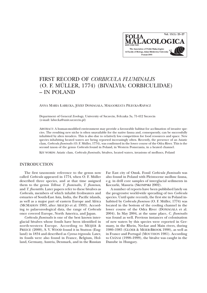first record of corbicula fluminalis