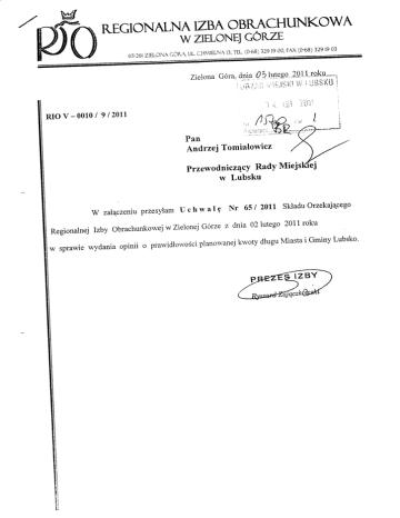 wsprawiewydaniaopiniioprawidłowościplanorvanejkwotydługuMiastaiGminyLubsko'