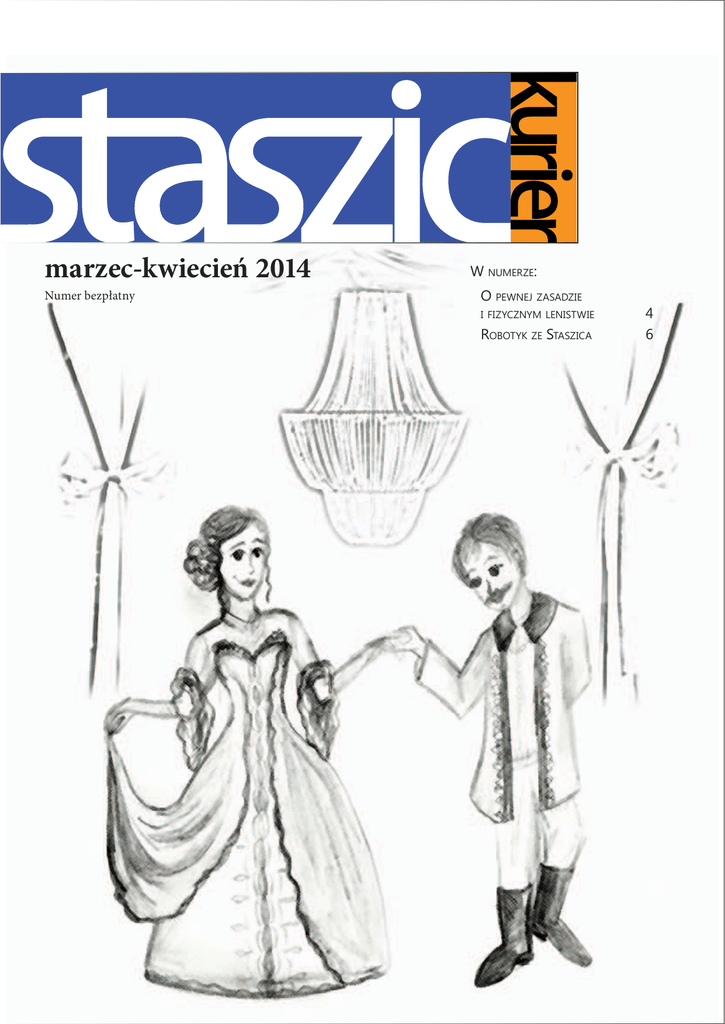 marzec-kwiecień 2014 Numer bezpłatny W numerze: O pewnej zasadzie i fizycznym lenistwie Robotyk ze Staszica 4 6 Max Jabłecki Natalia Trojanowska Od Naczelnych SpisZdarzyło treścisię...3 O ddajemy w Wasze ręce kolejne, już wiosenne wydanie Staszic Kuriera. W tym numerze po raz pierwszy zaprosiłem do współpracy Natalię Trojanowską jako Redaktor Naczelną, która przy ostatnich numerach dzielnie wspierała nas w redagowaniu, korektach i organizacji wydania. Efekt naszej współpracy trzymacie w ręku. Równolegle pracowaliśmy też nad drukiem Informatora, tak, aby obie pozycje były gotowe tuż przed Dniem Otwartym dla kandydatów do naszego Liceum. O czym przeczytacie na łamach tego numeru Staszic Kuriera? W rubryce „Wywiad” nasza nowa redaktor Klaudia z Inspirującego Staszicowego Koła Robotyki i Automatyki ISKRA rozmawia z Pawłem, zdolnym robotykiem, który ostatnio reprezentował naszą szkołę na zawodach Robotex w Tallinie w Estonii, gdzie zajął trzecie miejsce w kategorii LEGO Sumo. W tym wydaniu nie zabrakło stałych rubryk. Przemek kontynuuje swój fascynujący cykl artykułów o podroży po fizyce. Bieżący odcinek, w którym autor zachęca Was do kolejnych doświadczeń i rozważań, nosi tytuł „O pewnej zasadzie i fizycznym lenistwie”. Przeczytajcie koniecznie! Nasz specjalista w dziedzinie komunikacji Marcin w kolejnym odcinku dzieli się z Wami swoją wiedzą, tym razem na temat warszawskiego metra i planach jego rozbudowy. Tekst jest uzupełniony licznymi ilustracjami, które pozwolą Wam identyfikować modele poruszające się po podziemnych torach w naszym mieście. Grzesiek tym razem próbuje „rozgryźć” pochodzenie logotypu firmy Apple i w ciekawy sposób przybliża postać matematyka i ojca informatyki Alana Turinga jako twórcy Colossusa, pierwszej na świecie programowalnej maszyny obliczeniowej i jego wkład w wojnę kryptologiczną z nazistami. Na kolejnych stronach znajdziecie też podsumowanie naszego dorocznego balu ostatkowego autorstwa Karoliny. Z tego tekstu dowiecie się, jak powstawał słynny żyrandol i jak wyglądała praca przy organizacji balu z okazji 108-lecia istnienia naszej szkoły od strony organizatorów. O pewnej zasadzie i fizycznym lenistwie 4 Wywiad: Sukces robotyka ze Staszica 6 Od jabłka się zaczęło, na jabłku się skończy 8 XXVI Festiwal Poezji Współczesnej9 Ku zwiększeniu świadomości, cz. III 10 Bal ostatkowy 2014 - relacja organizatorów 12 Konferencja We Rule 2morrow - Rządzimy Jutrem! 13 A wiosną polecamy...14 SuQ16 Zdarzyło się... 4 marca – Bal Staszica Odbył się ostatkowy bal kostiumowy w strojach z epoki Stanisława Staszica wydawany z okazji 108. rocznicy utworzenia naszej Szkoły. Na ten uroczysty wieczór w auli przybyli licznie uczniowie oraz zaproszeni goście. Królem i królową balu werdyktem jury zostali Jakub Supeł i Maria Ostalska, zaś królem i królową balu głosami publiczności – pan prof. Adam Zmysłowski i pani prof. Beata Wanago. 6 marca – wykład o Żołnierzach Wyklętych Nie zapomnijcie także zajrzeć do naszego działu kulturalnego. Na zbliżające się tygodnie Kamila przygotowała dwie ciekawe pozycje. Pierwszą z nich jest wystawa prac Aleksandra Gierymskiego w Muzeum Narodowym w Warszawie, a drugą – seans filmowy w kinie. Ciekawa recenzja autorki niechybnie zainteresuje Was najnowszym filmem Jimiego Jarmucha. W auli Liceum odbył się wykład pana prof. Jana Żaryna o Żołnierzach Wyklętych. Na łamach tego numeru zapraszamy Was też na dwa ważne wydarzenia, które w najbliższym czasie odbędą się w naszym Liceum. Są to: XXVI Festiwal Poezji Współczesnej oraz konferencja We Rule 2morrrow – Rządzimy Jutrem, które to imprezy Staszic Kurier objął patronatem medialnym. Szczegółów szukajcie wewnątrz gazety. 15 marca – zwycięstwo drużyny XIV LO w półfinałach TMF Max Jabłecki Pamiętajcie, Staszic Kuriera tworzy i tworzyć będzie cała społeczność XIV LO. Nieustająco szukamy nowych piór do redakcji. Serdecznie zapraszamy wszystkich chętnych – piszcie na adres [email protected]. 7 marca – wybory do Młodzieżowej Rady Dzielnicy Ochota Odbyły się wybory, reprezentantem Liceum Staszica w Młodzieżowej Radzie Dzielnicy Ochota został Karol Šnapko. Drużyna naszych Młodych Fizyków w składzie: Anna Wald (kapitan), Paweł Czyż, Tymoteusz Miara, Filip Moldzyński, Radost Waszkiewicz pod opieką Łukasza Gładczuka 15 marca odniosła zwycięstwo w zawodach półfinałowych Turnieju Młodych Fizyków zdobywając 85.0 punktów,. Tym samym została zakwalifikowana do finałów ogólnopolskich. 31 marca – dzień otwarty dla kandydatów do klas pierwszych Odbyło się spotkanie informacyjne dla kandydatów do klas I w roku szkolnym 2014/2015 oraz ich Rodziców. opracowanie: Michał Radek 2 3 O pewnej zasadzie i fizycznym lenistwie Tekst: Przemysław Brzęczkowski Wyjrzyjmy za okno Energia potencjalna to zdolność układu ciał do wykonywania pracy. Energia potencjalna ma kilka cech, które chcę podkreślić. Pierwsza z nich to fakt, że możemy ją obliczać dla pewnych wybranych rodzajów oddziaływań – przykładem może być tutaj oddziaływanie elektryczne albo grawitacyjne. W przypadku oddziaływań takich jak tarcie, pojęcie energii potencjalnej traci sens. Druga cecha to fakt, że jest ona związana z układem ciał a nie z konkretnym ciałem. Niektórzy mają z tym problemy, licząc energię potencjalną układu trzech ciał. Jeśli mamy wzór określający energię układu dwóch ciał, to energia potencjalna układu kilku ciał będzie sumą energii potencjalnych obliczonych dla każdej pary ciał. Trzecia i ostatnia kwestia to dowolność wyboru poziomu odniesienia, czyli układu, w którym energię przyjmujemy za równą zero. Oczywiście najlepiej to zrobić tak, aby wzory i obliczenia były proste. Takim układem dla centralnego pola elektrycznego i grawitacyjnego są ciała rozsunięte na nieskoń